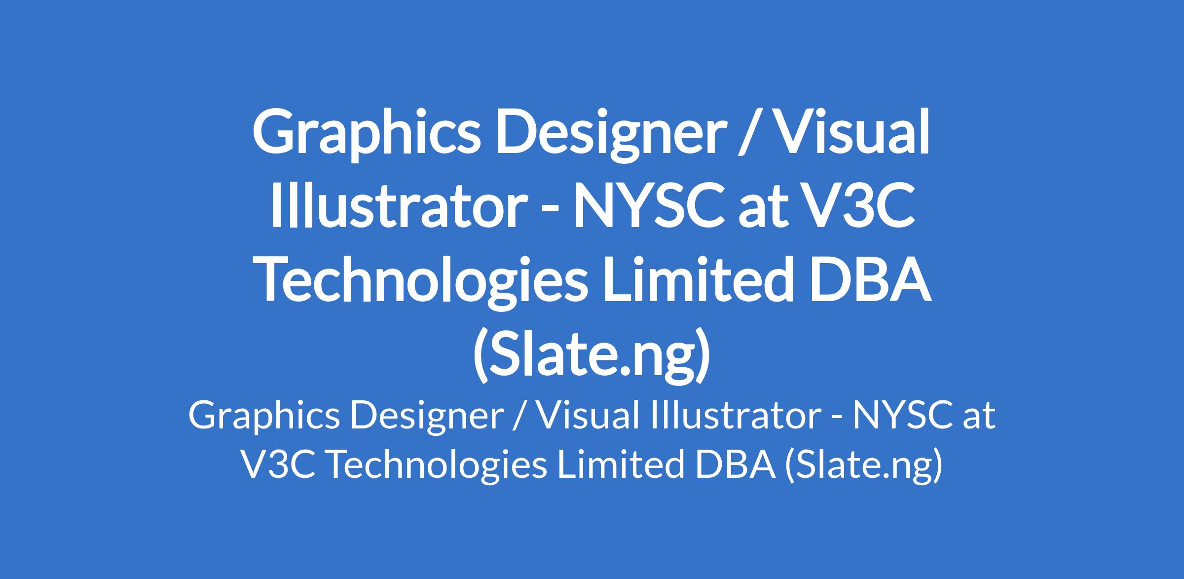 V3C Technologies Limited DBA (Slate.ng) is recruiting to fill the position of: Graphics Designer / Visual Illustrator - NYSC. The position is located in Gwarimpa, Abuja (FCT). Salary: N100,000 annually. Interested candidates should possess a Bachelors Degree in Fine Arts, Visual Communication, Graphic Design, Educational Media, or related field (or equivalent experience) with 13 years of experience designing visuals, educational content, or presentations (experience in EdTech or education is a strong advantage).