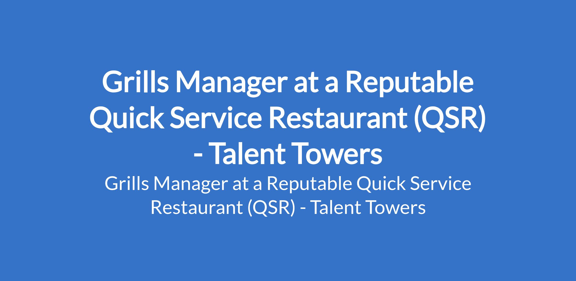 Talent Towers - Our client, a reputable Quick Service Restaurant (QSR) is recruiting to fill the position of: Grills Manager. The position is located in Lekki, Lagos State. Salary: N200,000 - N250,000 monthly. Interested candidates should have proven experience in a supervisory role within a grill-focused or Quick Service Restaurant (QSR) environment.