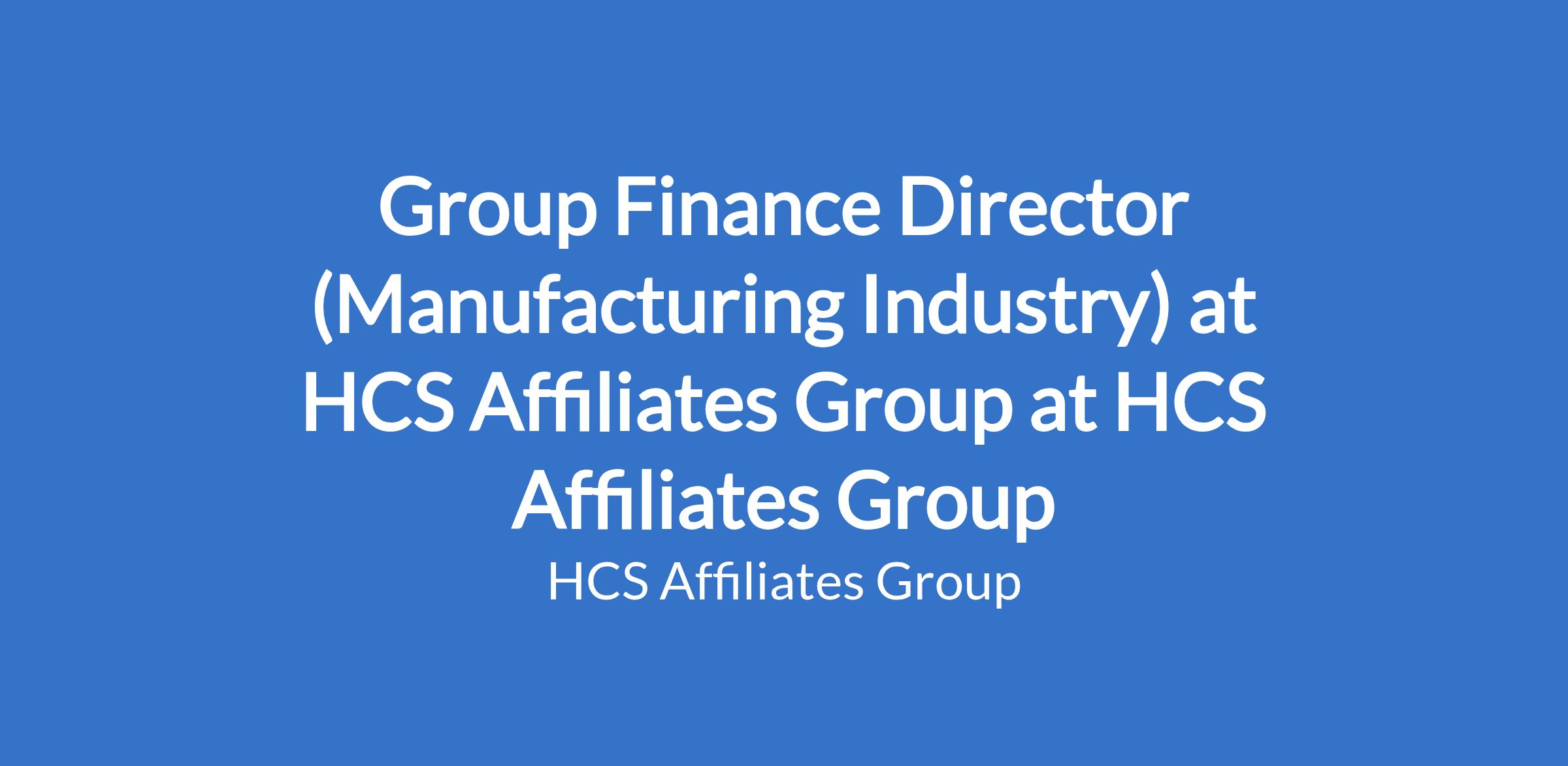 Group Finance Director (Manufacturing Industry) at HCS Affiliates Group at HCS Affiliates Group