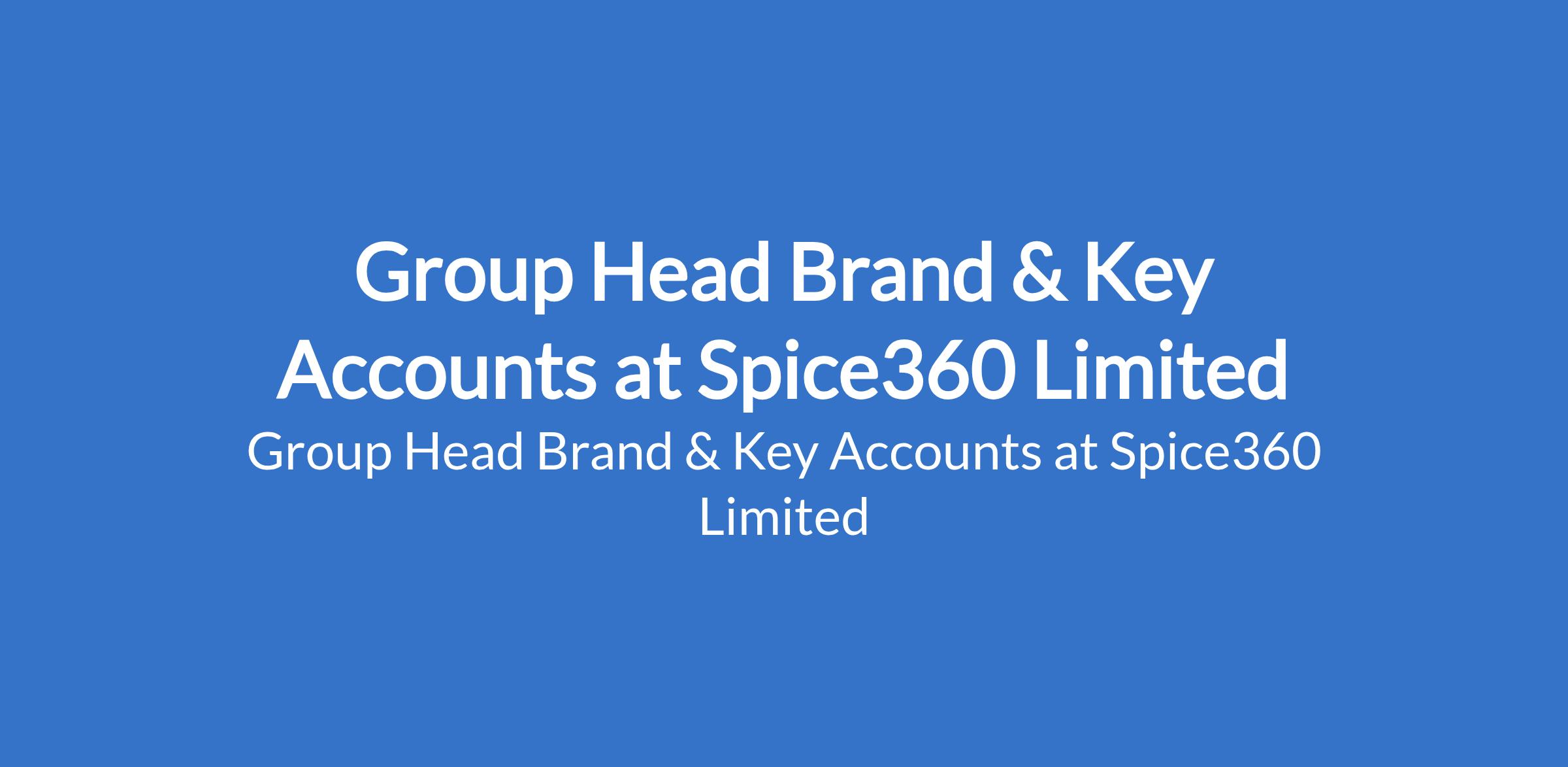 Spice360 Limited is recruiting to fill the position of: Group Head Brand & Key Accounts. The position is located in Lagos State. Interested candidates should possess relevant qualifications with 812 years experience in advertising, marketing communications or brand management.