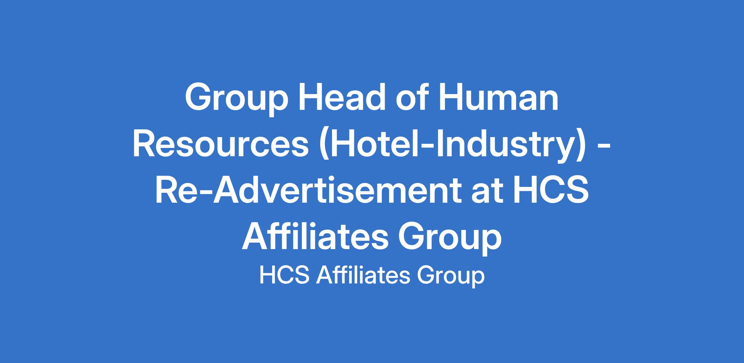Group Head of Human Resources (Hotel-Industry) - Re-Advertisement at HCS Affiliates Group
