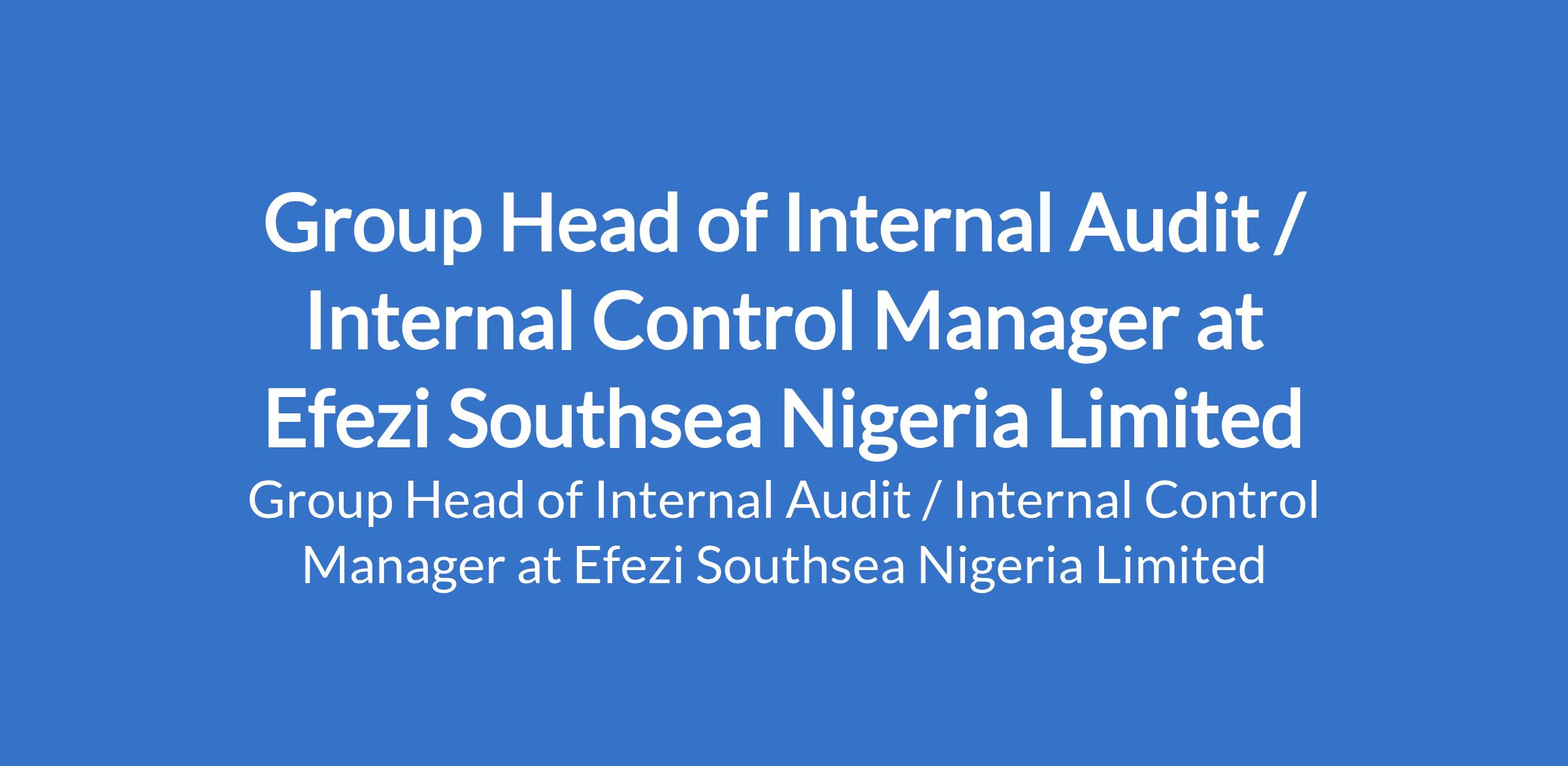 Efezi Southsea Nigeria Limited is recruiting to fill the position of: Group Head of Internal Audit / Internal Control Manager. The position is located in Lagos State. Interested candidates should possess a Bachelors Degree or HND in Accounting, Finance, or a related discipline with a minimum of 10 years experience in internal audit/internal control, strictly within the hospitality industry; Professional certification (ICAN / ACA) is required.
