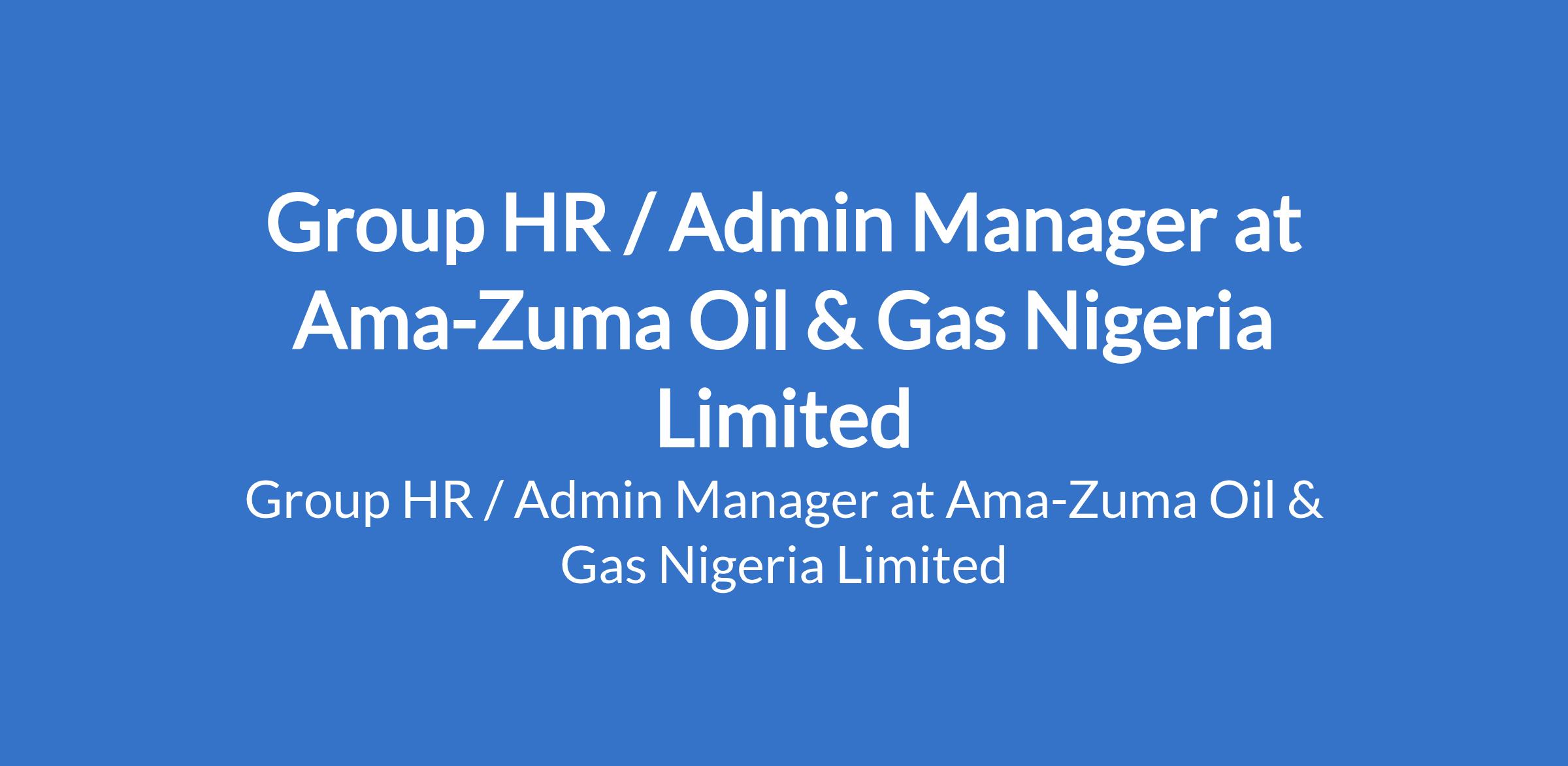 Ama-Zuma Oil & Gas Nigeria Limited is recruiting to fill the position of: Group HR / Admin Manager. The position is located in Abule-Egba, Lagos State. Interested candidates should possess a First Degree / HND, CIPM in Social Sciences / Humanities with 15 - 20 years relevant experience.