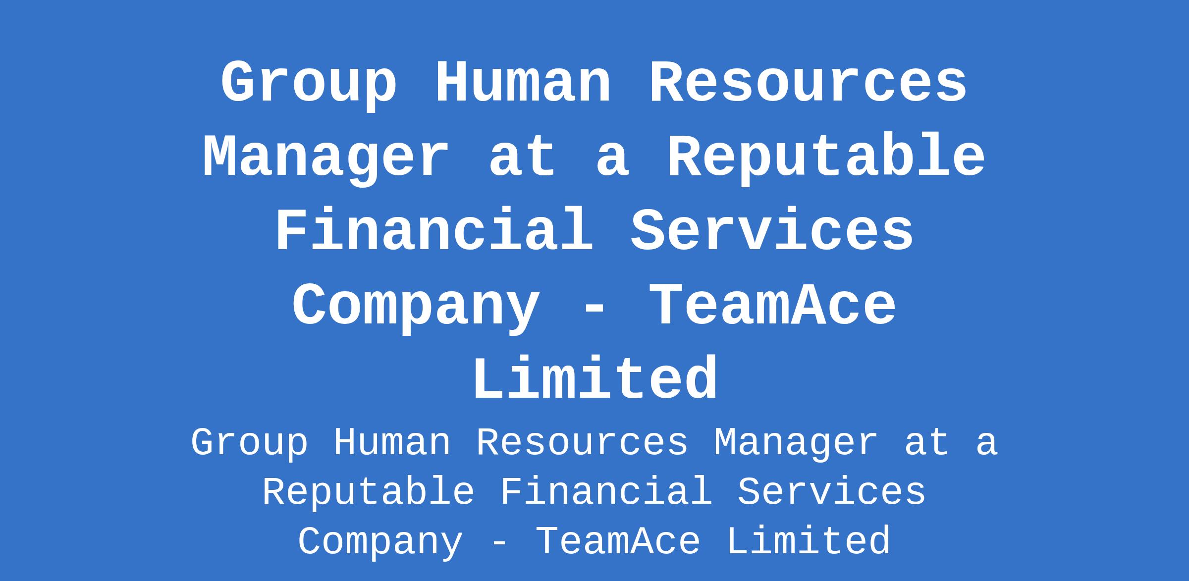 TeamAce Limited - Our client, a reputable organization in the financial services sector is recruiting to fill the position of: Group Human Resources Manager. The position is located in Victoria Island, Lagos State. Salary: N1,170,000 - N2,250,000 monthly. Interested candidates should possess a Bachelors / Master`s Degree in Human Resources, Business Administration, or a related discipline with 10 15 years progressive HR experience, with at least 5 years in a senior HR leadership role.