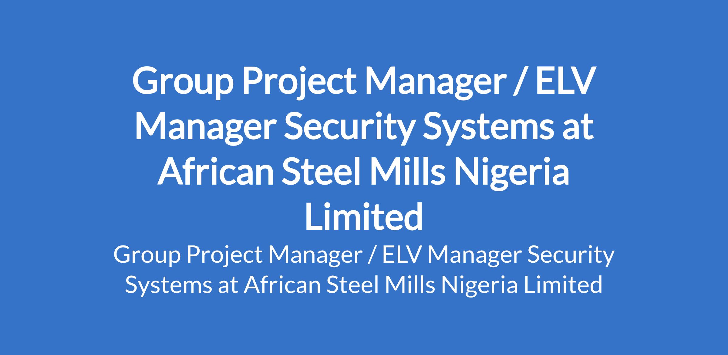 African Steel Mills Nigeria Limited is recruiting to fill the position of: Group Project Manager / ELV Manager Security Systems. The position is located in Abuja / Kaduna State. Interested candidates should possess a Degree / Diploma in Electrical, Electronics, or a related field with 10+ years experience in ELV/security systems project management.