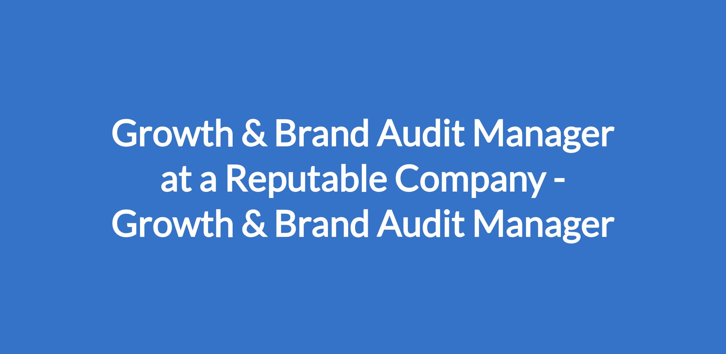 Growth & Brand Audit Manager at a Reputable Company - Growth & Brand Audit Manager