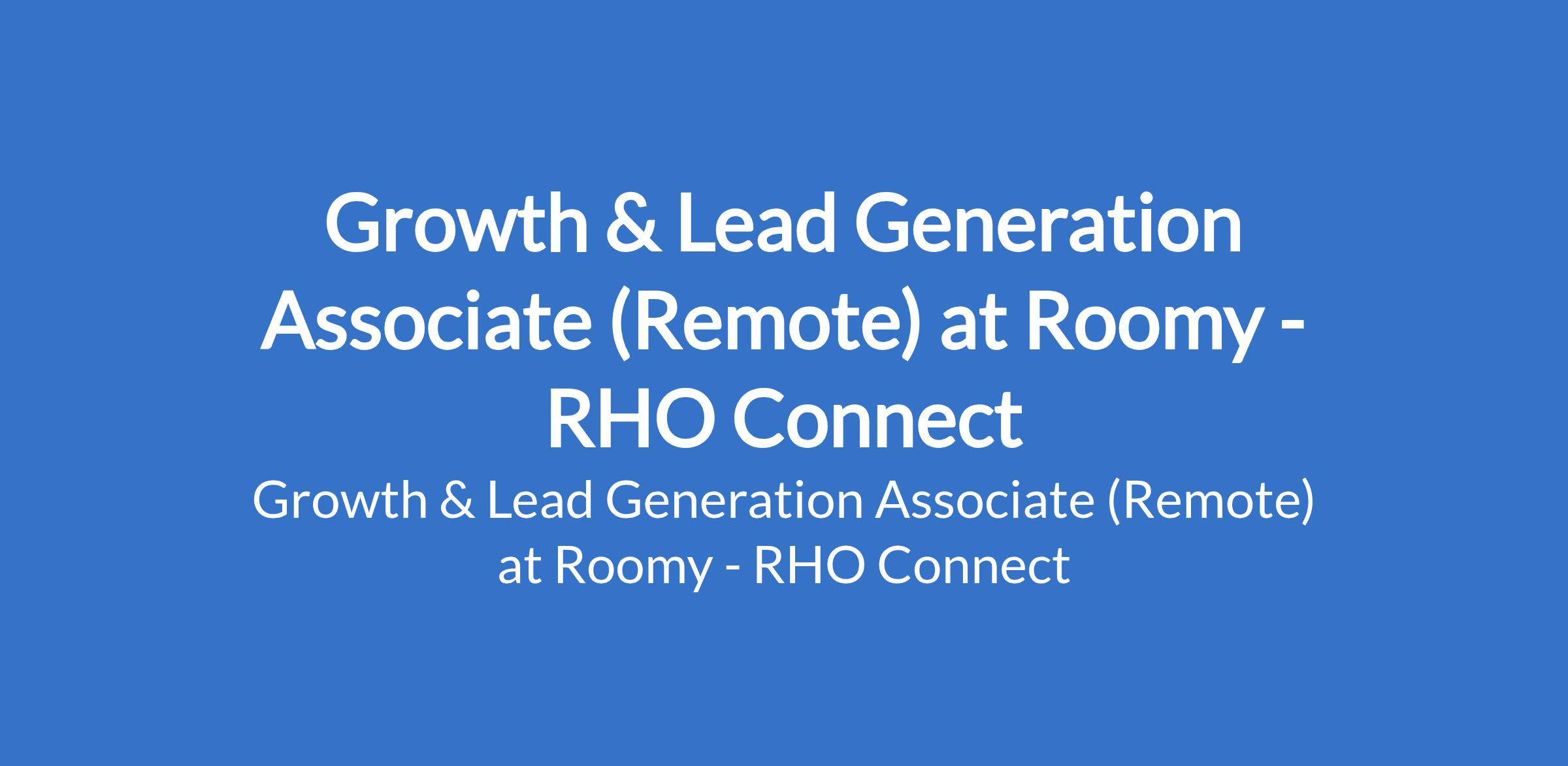 RHO Connect - Roomy is recruiting to fill the position of: Growth & Lead Generation Associate. This is a remote job. Interested candidates should possess an HND / Bachelors / Master`s Degree with 2 years experience and should be confident messaging people online (DMs, comments, follow-ups).