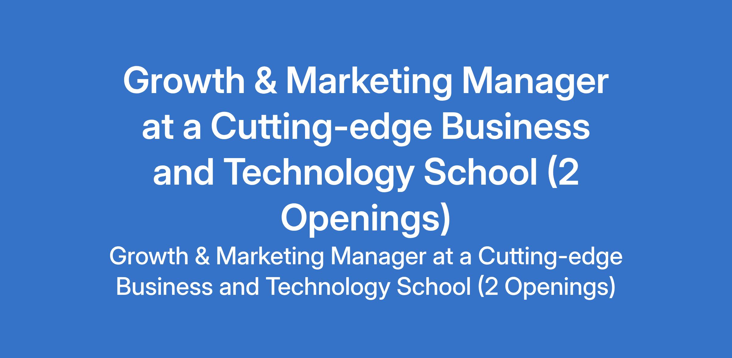 A Cutting-edge Business and Technology School is recruiting to fill the position of: Growth & Marketing Manager. The position is located in Abuja (FCT) and Lagos State. Salary: N100,000 - N250,000 per month. Interested candidates should possess a relevant qualification with 25 years in growth marketing, product growth, or performance marketing.