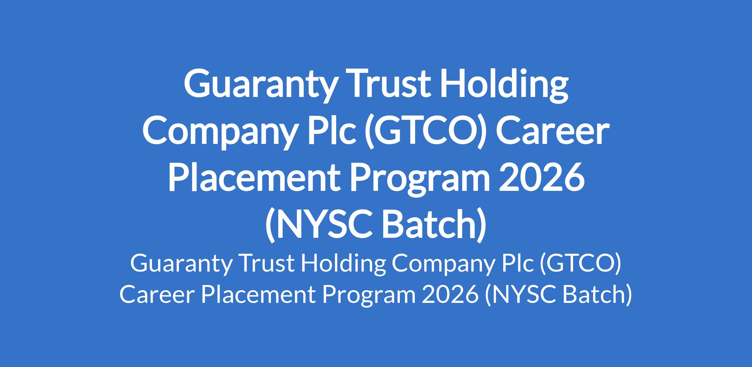 Guaranty Trust Holding Company (GTCO) invites applications from qualified candidates for the 2026 Career Placement Program (NYSC Batch). The position is required nationwide. Interested candidates should possess a minimum of a Bachelors Degree.