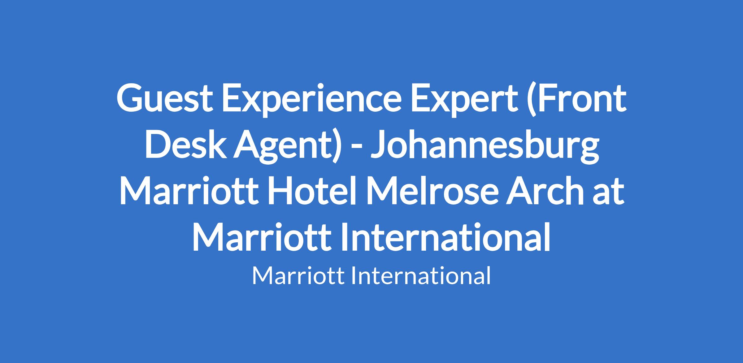 Guest Experience Expert (Front Desk Agent) - Johannesburg Marriott Hotel Melrose Arch at Marriott International