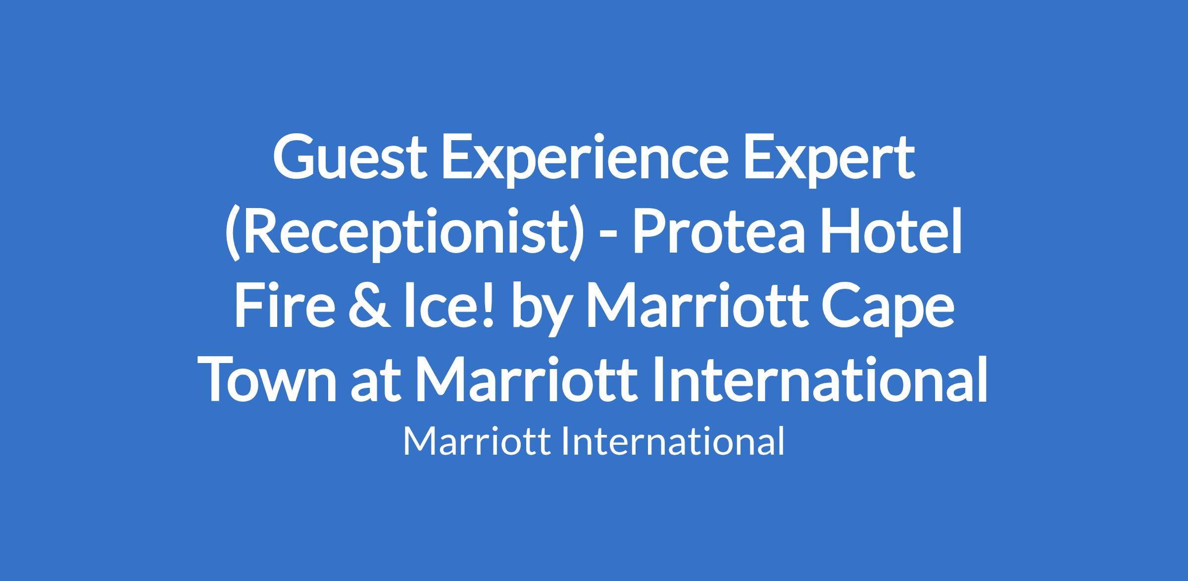 Guest Experience Expert (Receptionist) - Protea Hotel Fire & Ice! by Marriott Cape Town at Marriott International