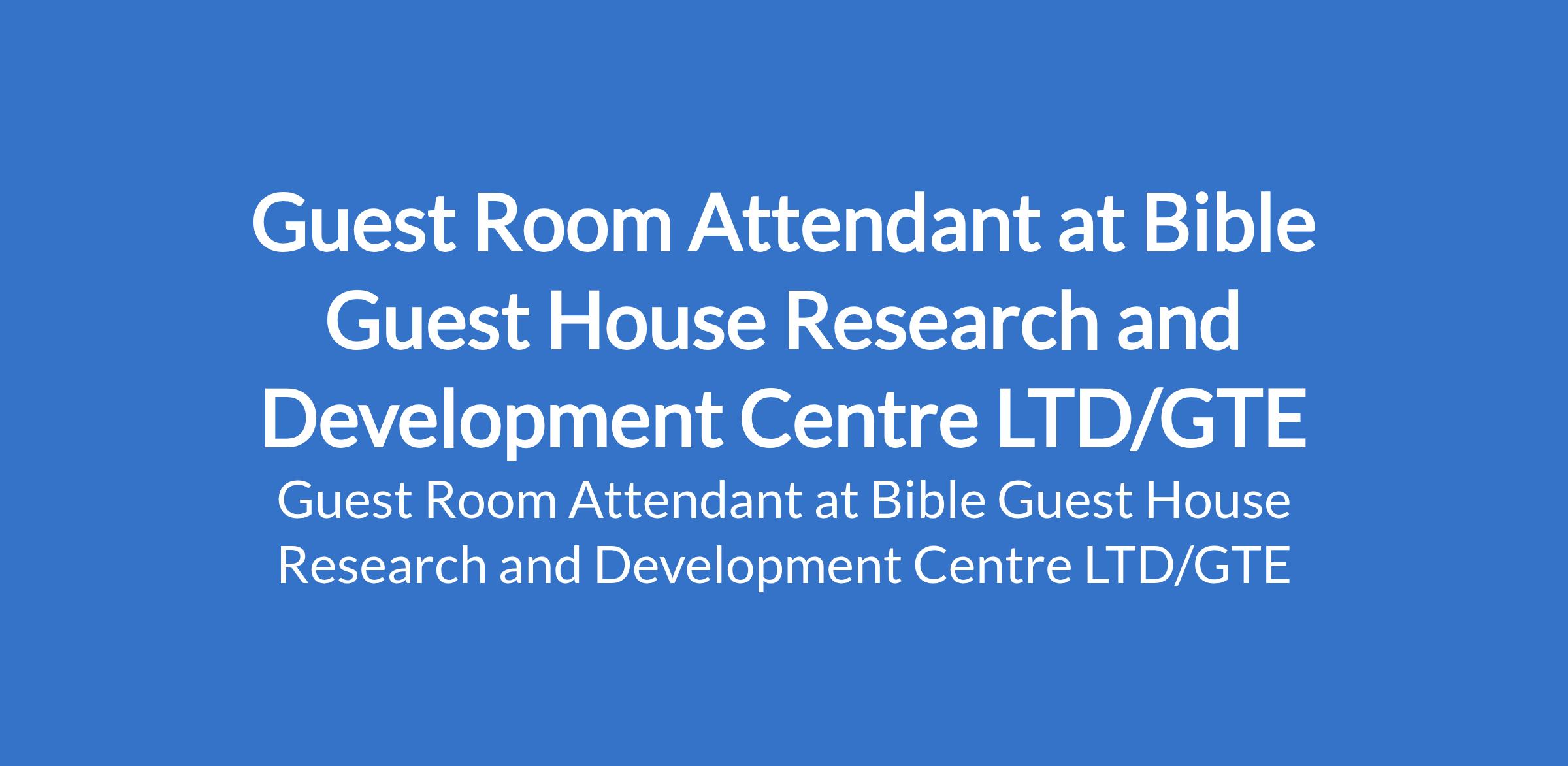 Bible Guest House Research and Development Centre LTD/GTE is recruiting to fill the position of: Guest Room Attendant. The position is located in Abuja (FCT). Interested candidates should possess a National Diploma (ND) in a related field or Senior School Certificate (SSCE) with a minimum of two (2) years relevant experience in housekeeping or hospitality services.