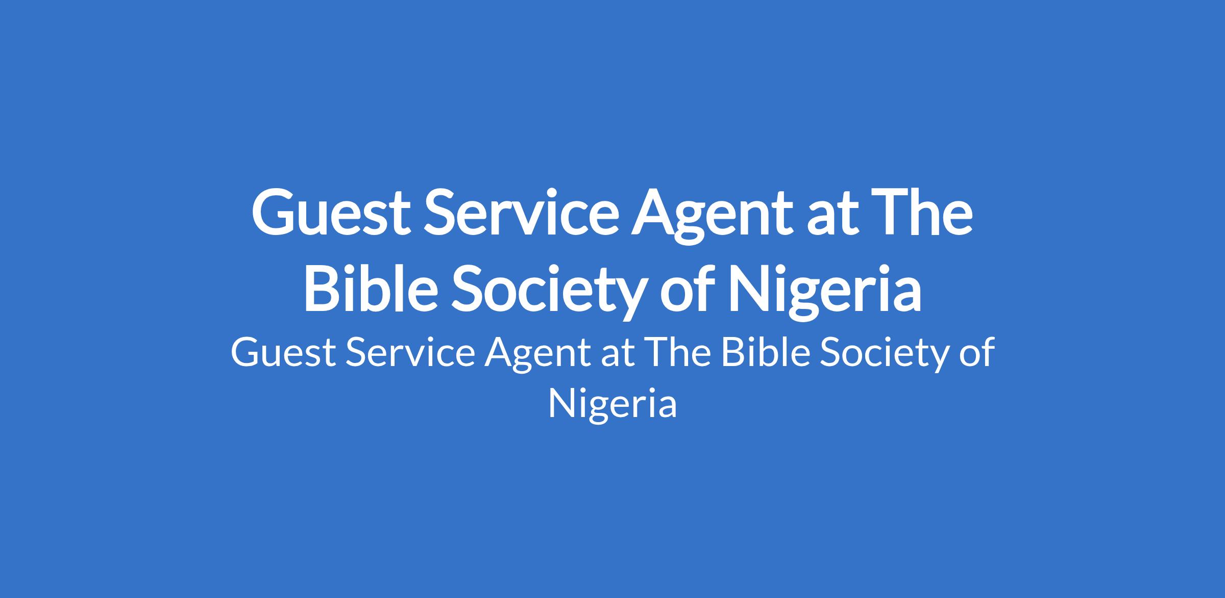 The Bible Society of Nigeria is recruiting to fill the position of: Guest Service Agent. The position is located in Lagos State. Interested candidates should possess Minimum of Degree in Social Sciences or Hotel & Catering Management with at least 2 years of relevant experience in reputable hotels or guest houses.