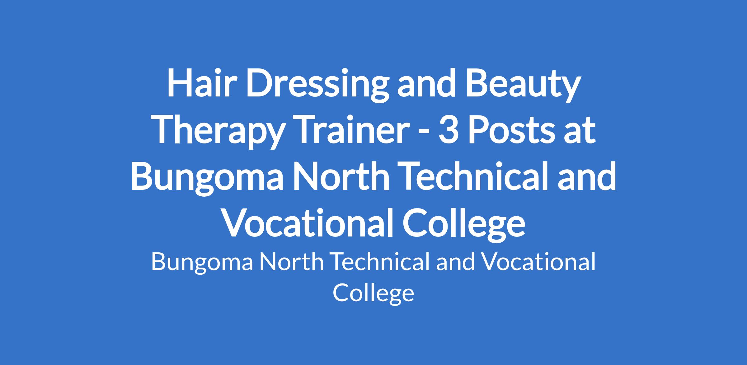 Hair Dressing and Beauty Therapy Trainer - 3 Posts at Bungoma North Technical and Vocational College