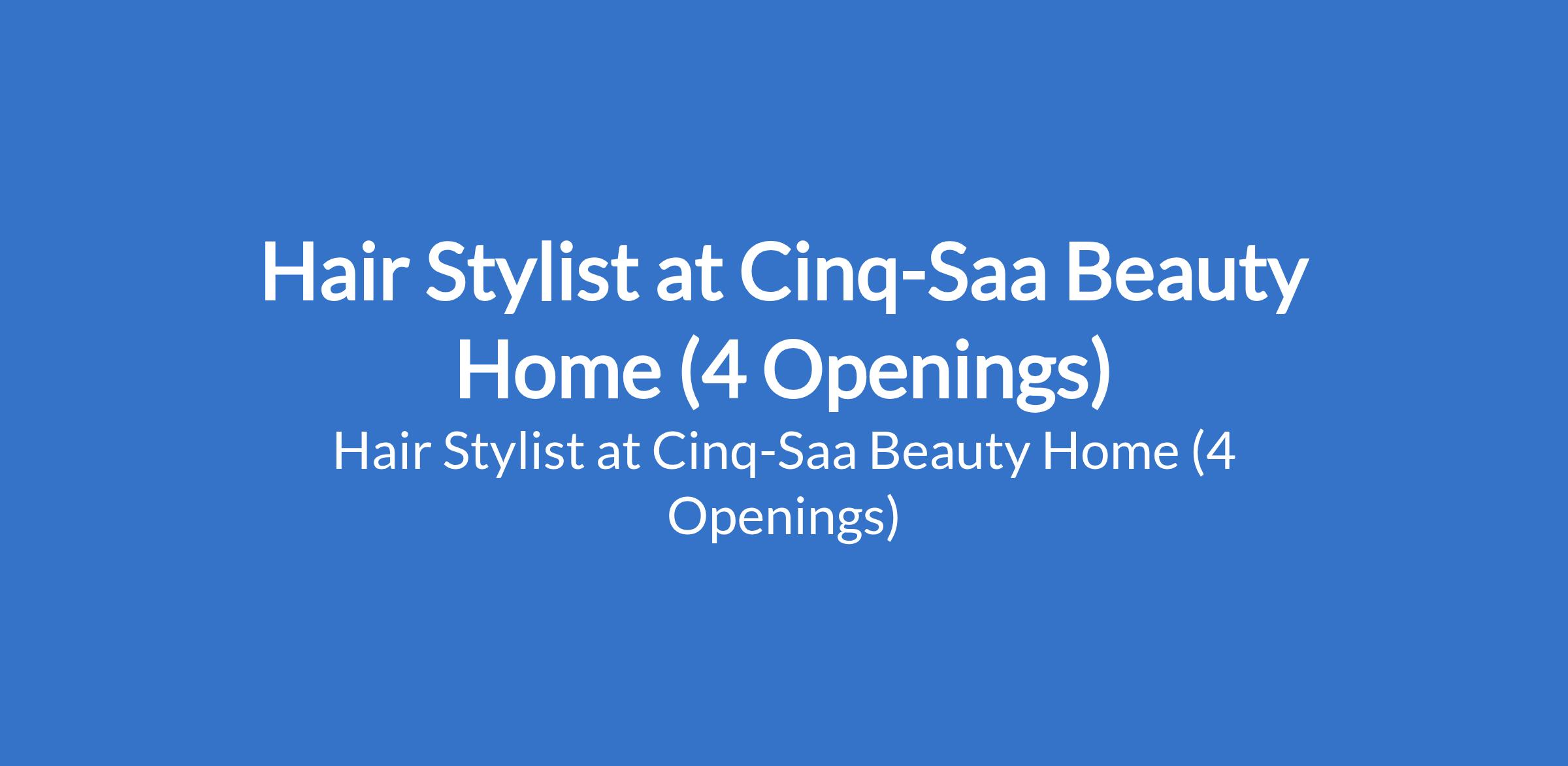 Cinq-Saa Beauty Home is recruiting to fill the position of: Hair Stylist. The position is located in Jakoni Plaza, Platimum Way, Jakande First gate, Lekki - Lagos State. Salary: N50,000 - N150,000 monthly. Interested candidates should possess a full Cosmetology license in most regions.