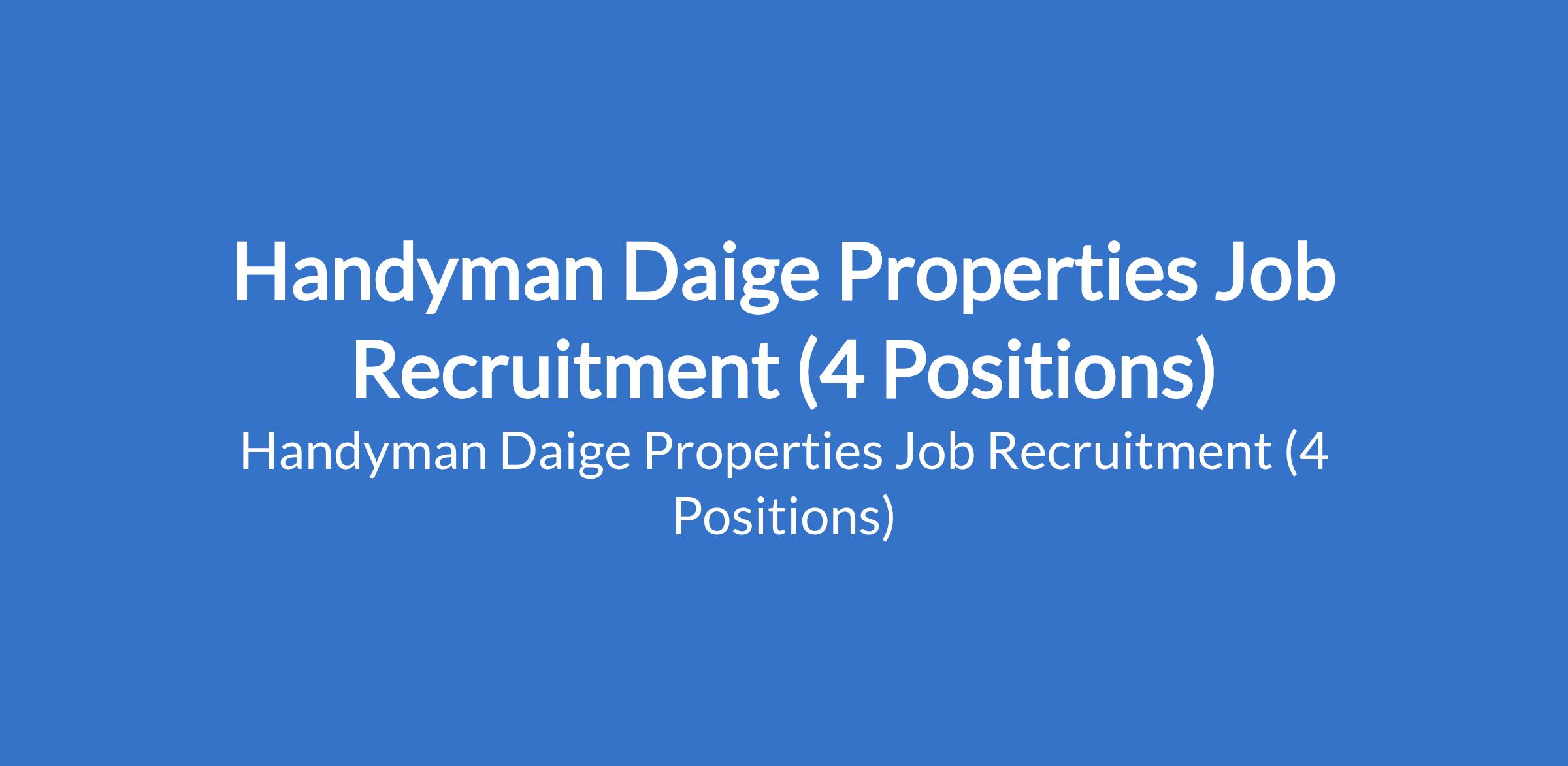Handyman Daige Properties Job Recruitment (4 Positions)