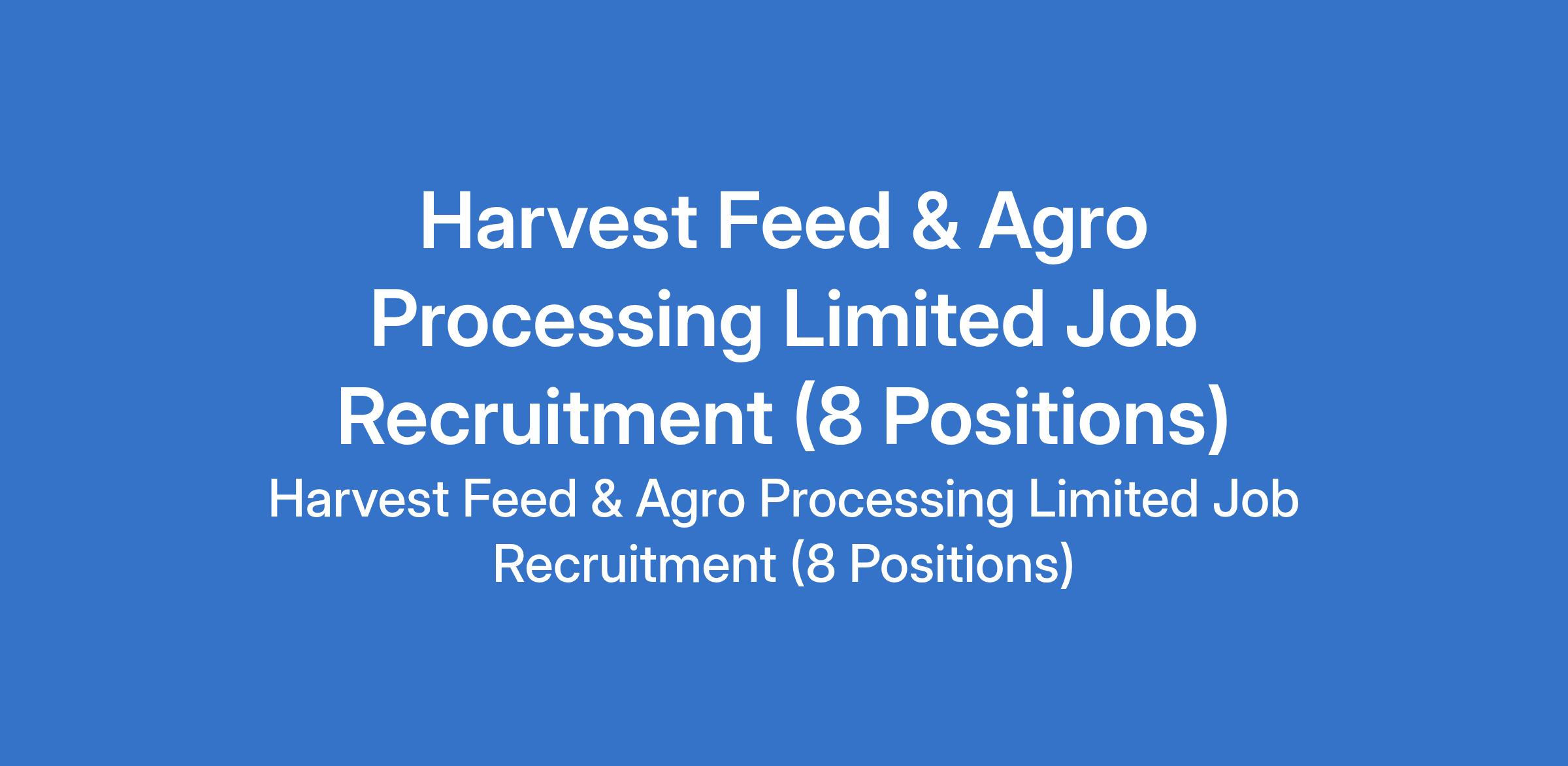 Harvest Feed & Agro Processing Limited is recruiting suitable candidates to fill the following positions in Ogun State: Registered Nurse, Mechanical Engineer, Human Resources Officer, Plumber, Machine Operator, Microbiologist, Sales Representative, and Sales Office Assistant.