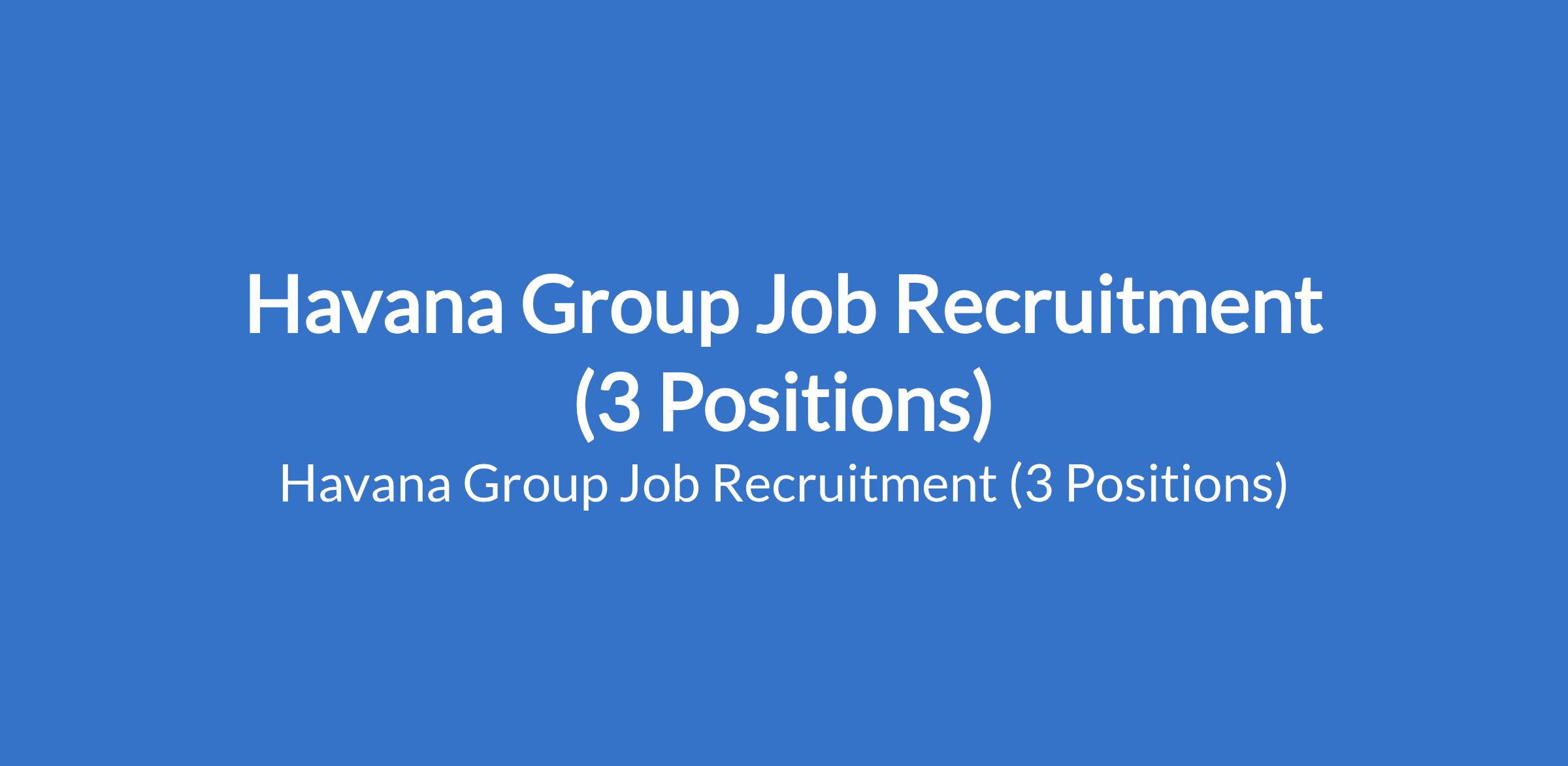 Havana Group Job Recruitment (3 Positions)