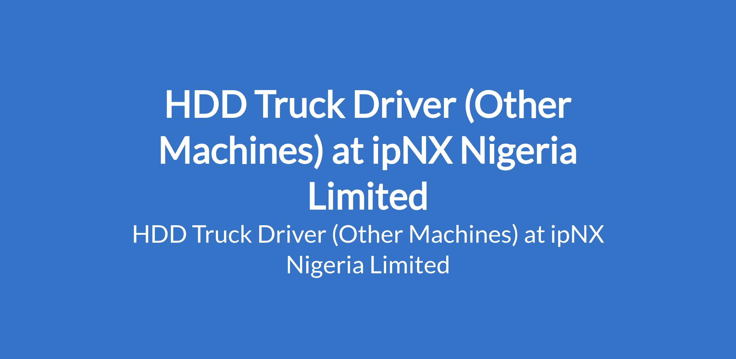 ipNX Nigeria Limited is recruiting to fill the position of: HDD Truck Driver (Other Machines). Salary: N150,000 per month. The position is located in Lagos State. Interested candidates should possess a Valid Nigerian drivers license (Class G and above) with a clean driving record and a minimum of [2] years experience in transporting heavy equipment or machinery for HDD operations.