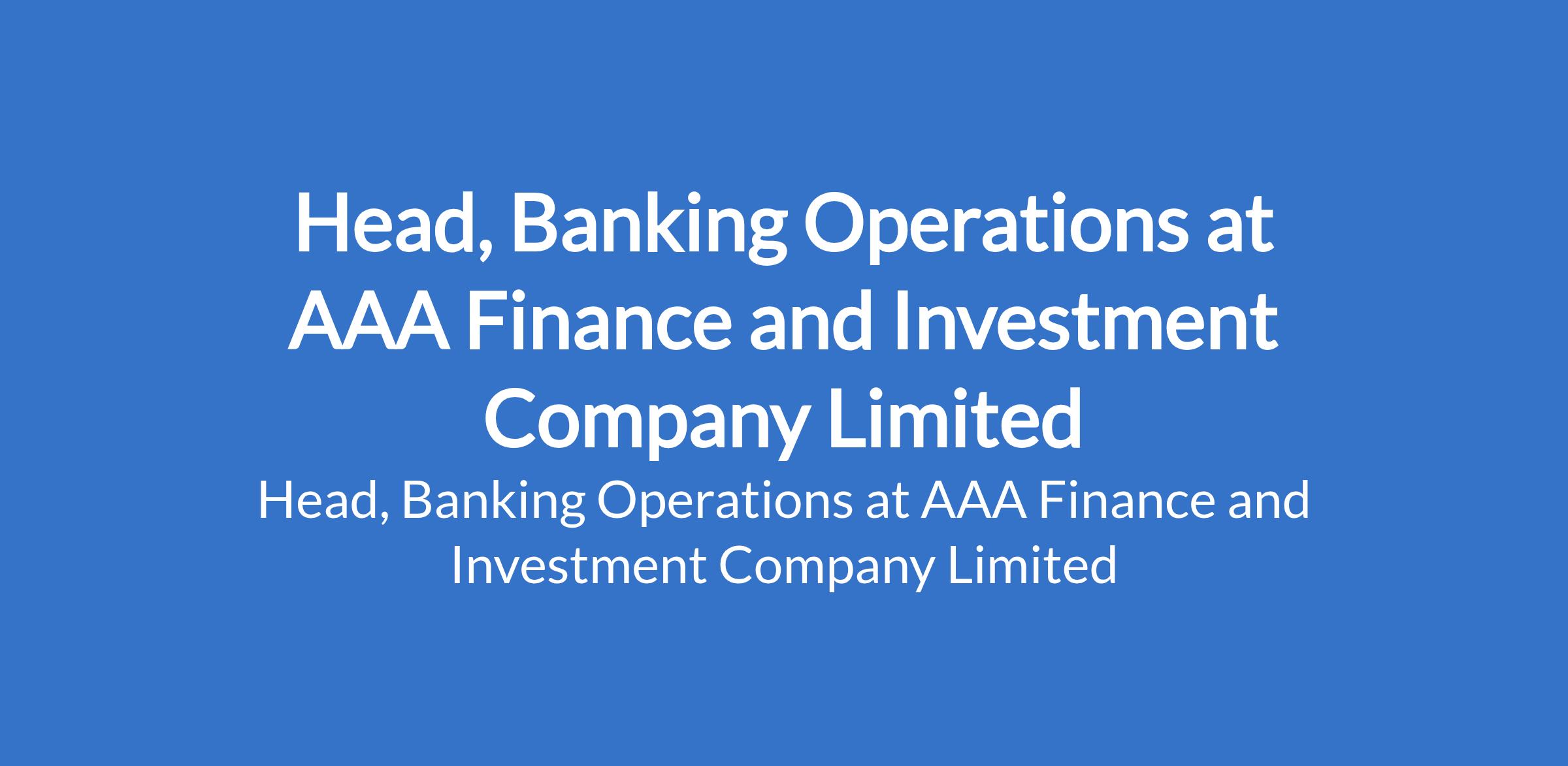 AAA Finance and Investment Company Limited is recruiting to fill the position of: Head, Banking Operations. The position is located in Lagos State. Interested candidates should possess a Degree from an accredited institution or any other professional certification with 2-3 year proven work experience in a financial institution in a managerial role.
