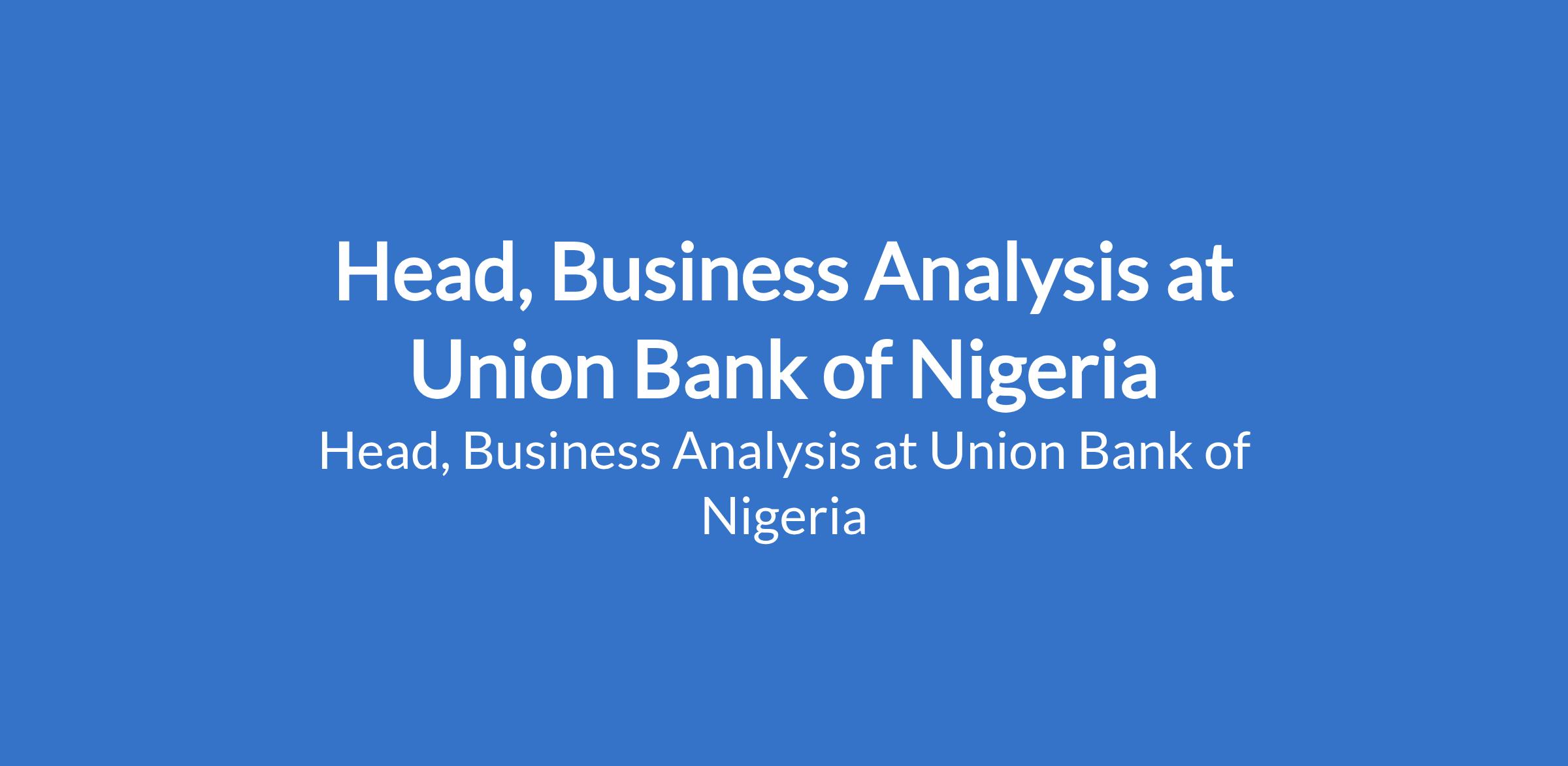 Union Bank of Nigeria is recruiting to fill the position of: Head, Business Analysis. The position is located in Lagos State. Interested candidates should possess relevant qualifications and experience.