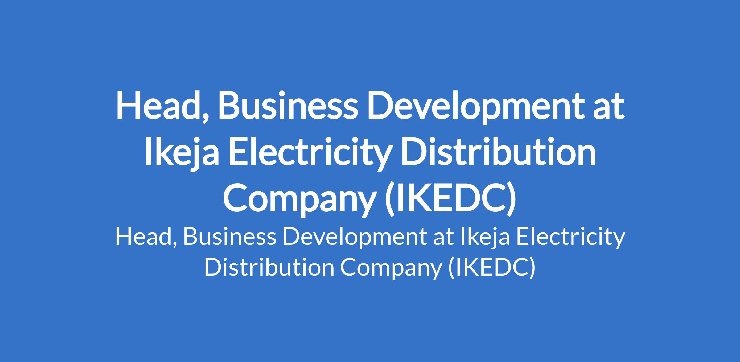 Ikeja Electricity Distribution Company (IKEDC) is recruiting to fill the position of: Head, Business Development. The position is located in Lagos State. Interested candidates should possess a First Degree or its equivalent in Marketing, Engineering, Economics, Business Administration, or a related field with 10 15 years field experience in business development, preferably within the power/energy, infrastructure, utilities, or telecom sectors.