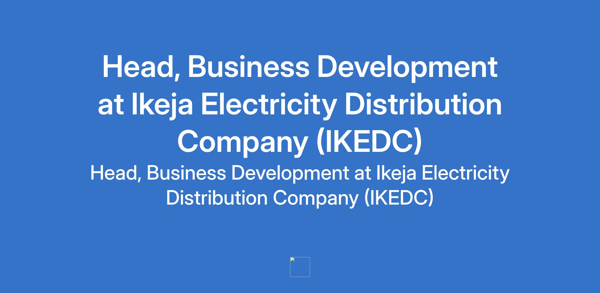 Ikeja Electricity Distribution Company (IKEDC) is recruiting to fill the position of: Head, Business Development. The position is located in Lagos State. Interested candidates should possess a First Degree or its equivalent in Marketing, Engineering, Economics, Business Administration, or a related field with 10 15 years field experience in business development, preferably within the power/energy, infrastructure, utilities, or telecom sectors.