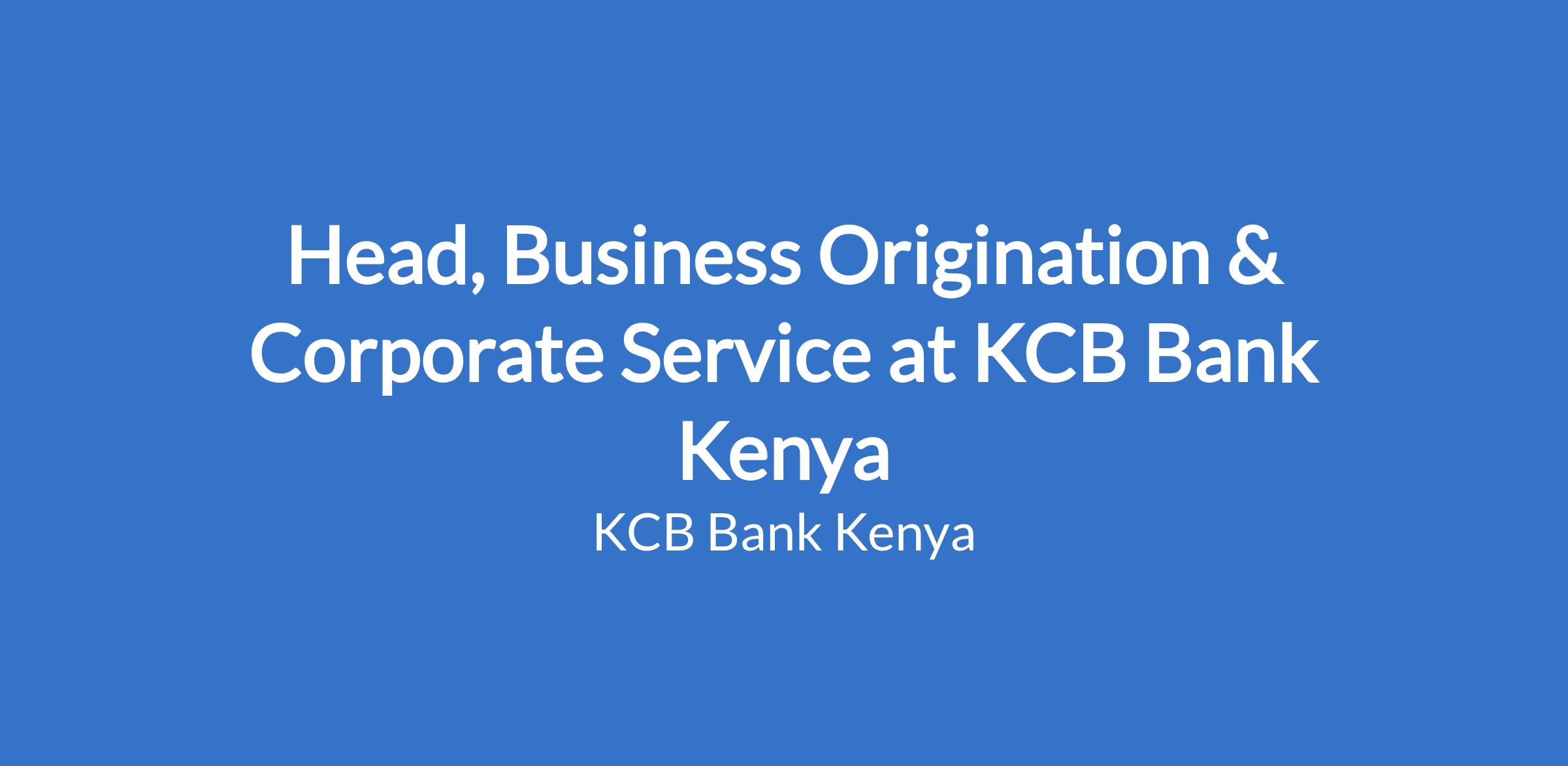 Head, Business Origination & Corporate Service at KCB Bank Kenya