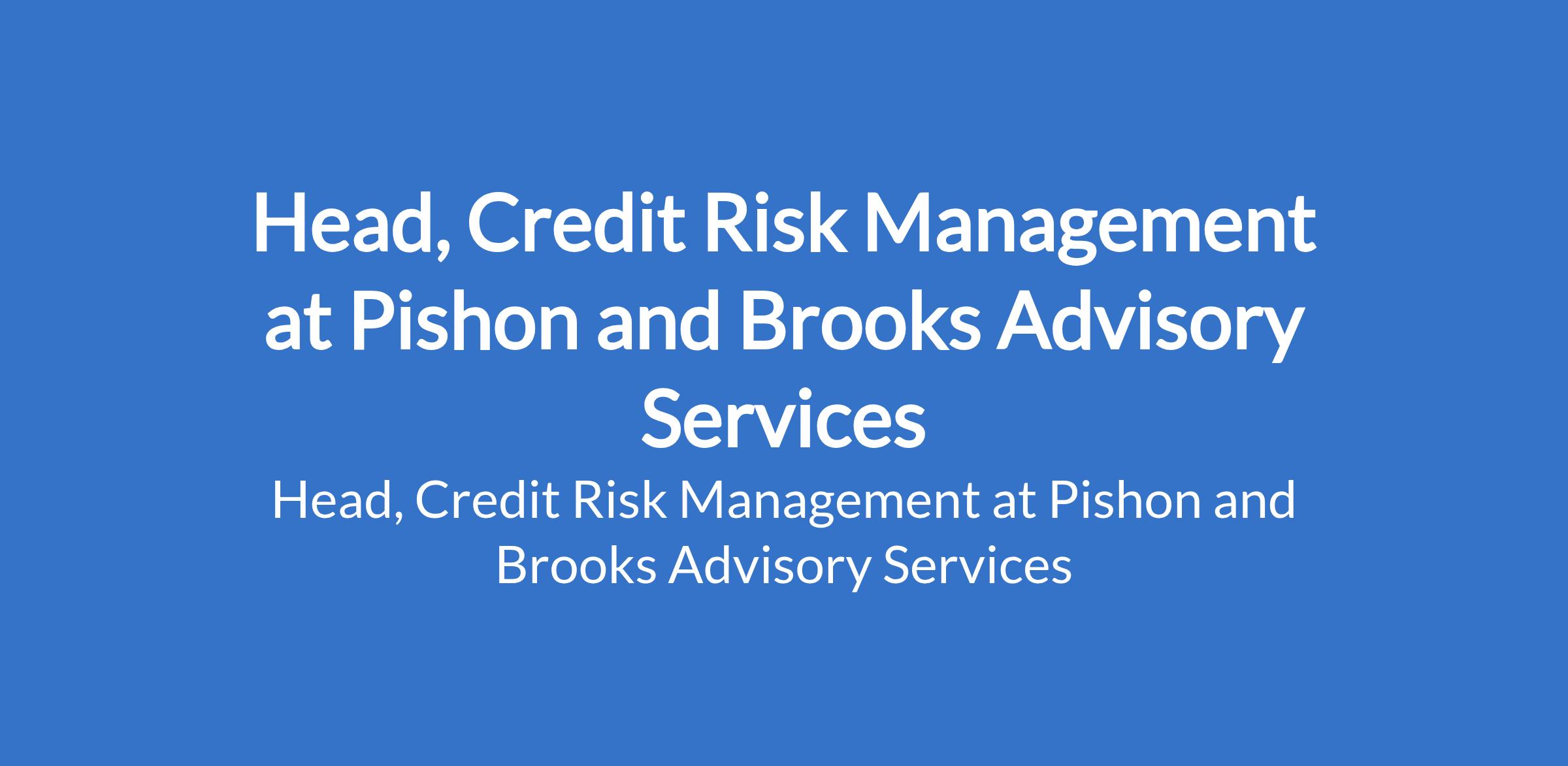 Pishon and Brooks Advisory Services - Our client, a fast-growing CBN-licensed Other Financial Institution (OFI) is recruiting to fill the position of: Head, Credit Risk Management. The position is located in Lagos State. Interested candidates should possess a Bachelors Degree in Finance, Accounting, Economics, or related field with a minimum of 12 years of experience in credit/lending with at least 5 years in a senior credit leadership role at a bank or major finance company.