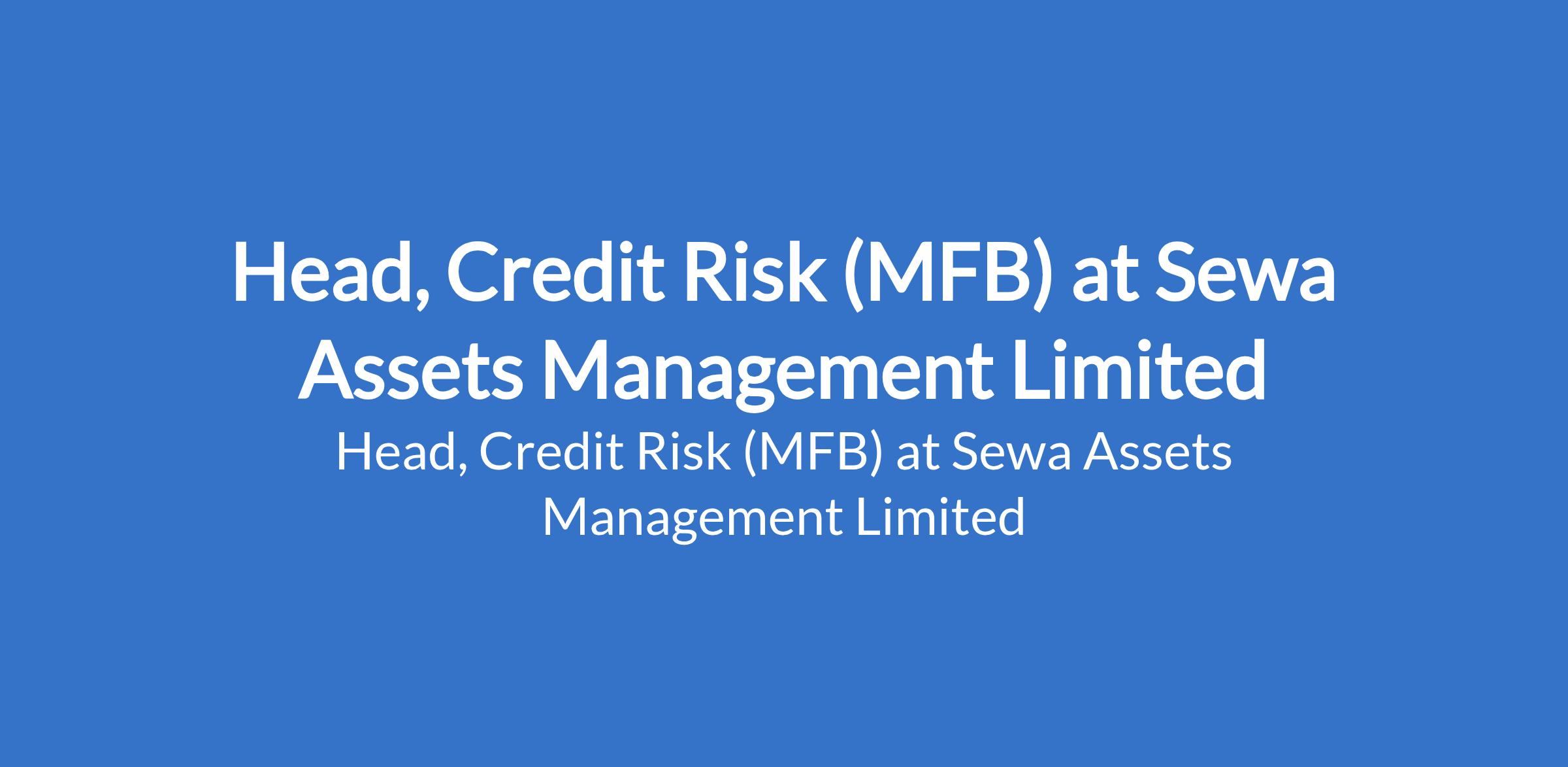 Sewa Assets Management Limited is recruiting to fill the position of: Head, Credit Risk (MFB). The position is located in Lekki Epe Express Road, Lagos State. Interested candidates should possess a Bachelors Degree in Finance, Economics, Accounting, or related field with 5 years experience in banking or microfinance, with strong exposure to credit risk.