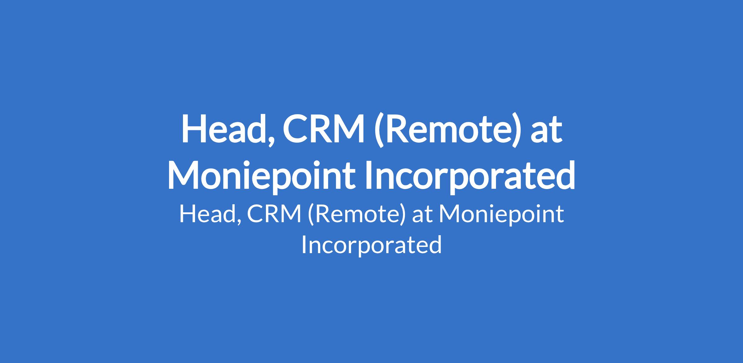 Moniepoint Incorporated is recruiting to fill the position of: Head, CRM.This is a Remote Role. Interested candidates should possess relevant qualifications with 810+ yearsin direct-to-consumer marketing, with a strong bias toward growth, lifecycle, or CRM functions.