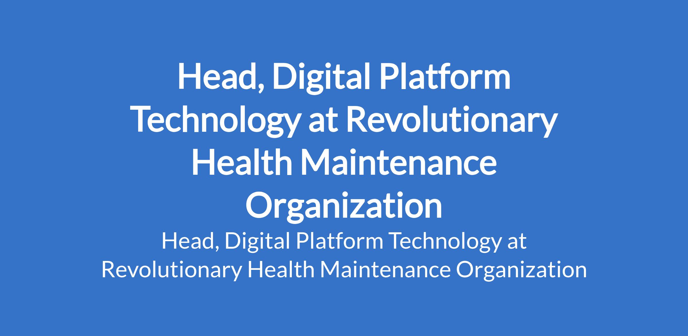 Revolutionary Health Maintenance Organization is recruiting to fill the position of: Head, Digital Platform Technology. The position is located in Abuja (FCT). Interested candidates should possess a Bachelors Degree in Information Technology, Computer Science, Sciences, Project Management or related fields with 5 - 7 years experience in Technology and Project Management.