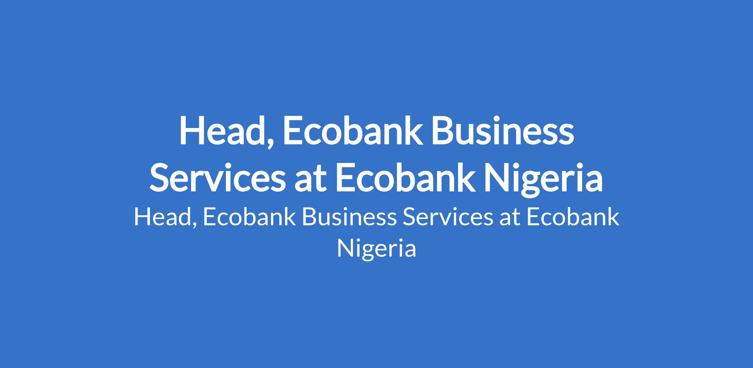 Ecobank Nigeria is recruiting to fill the position of: Head, Ecobank Business Services. The position is located in Victoria Island, Lagos State. Interested candidates should possess a Bachelors Degree with work experience.