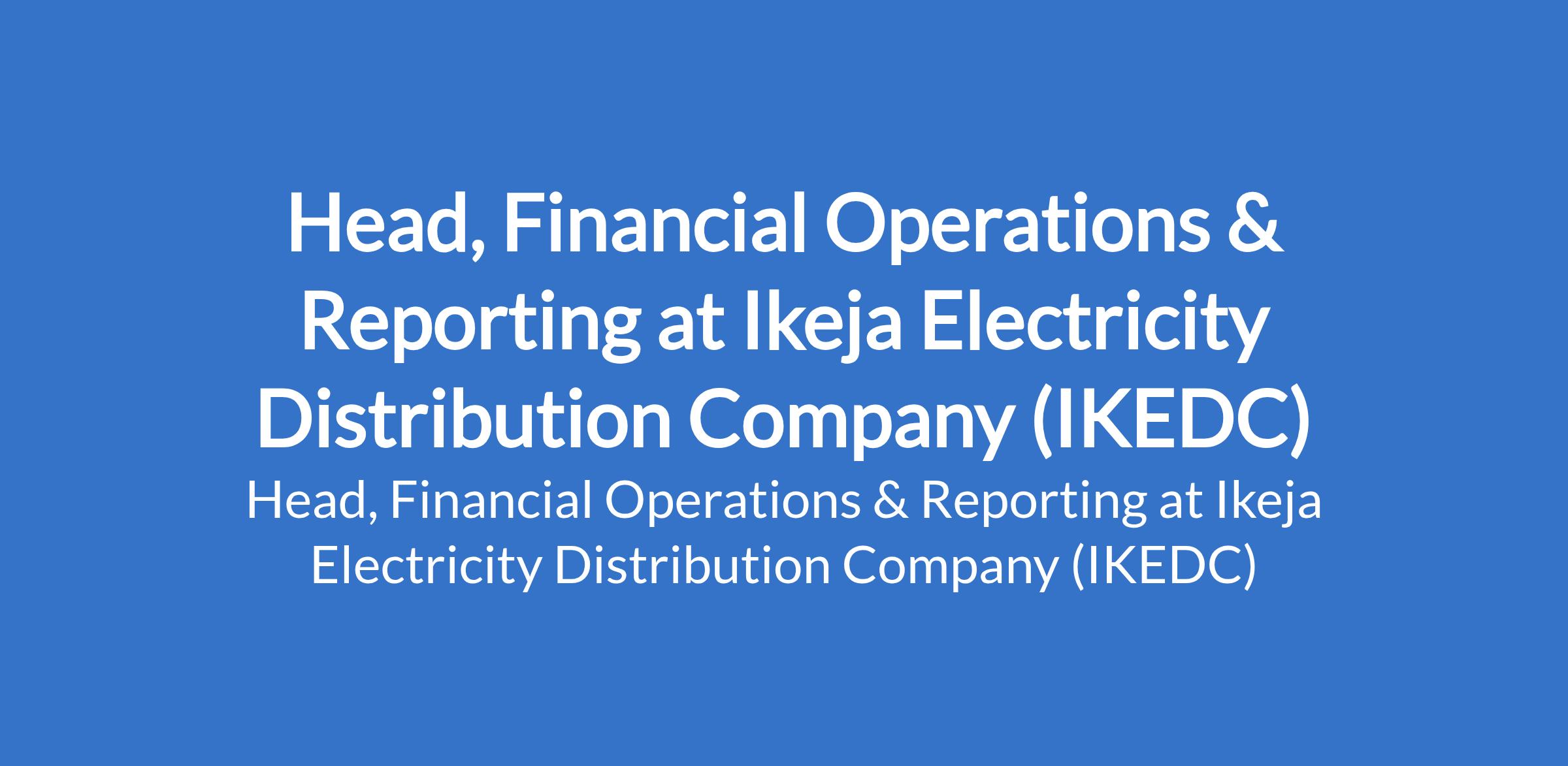 Ikeja Electricity Distribution Company (IKEDC) is recruiting to fill the position of: Head, Financial Operations & Reporting. The position is located in Lagos State. In this role, you will be tasked to oversee, direct, and organize the work of the finance operations and accounting teams. Interested candidates should possess Bachelors Degree, HND, Master Degree with proven years of experience.