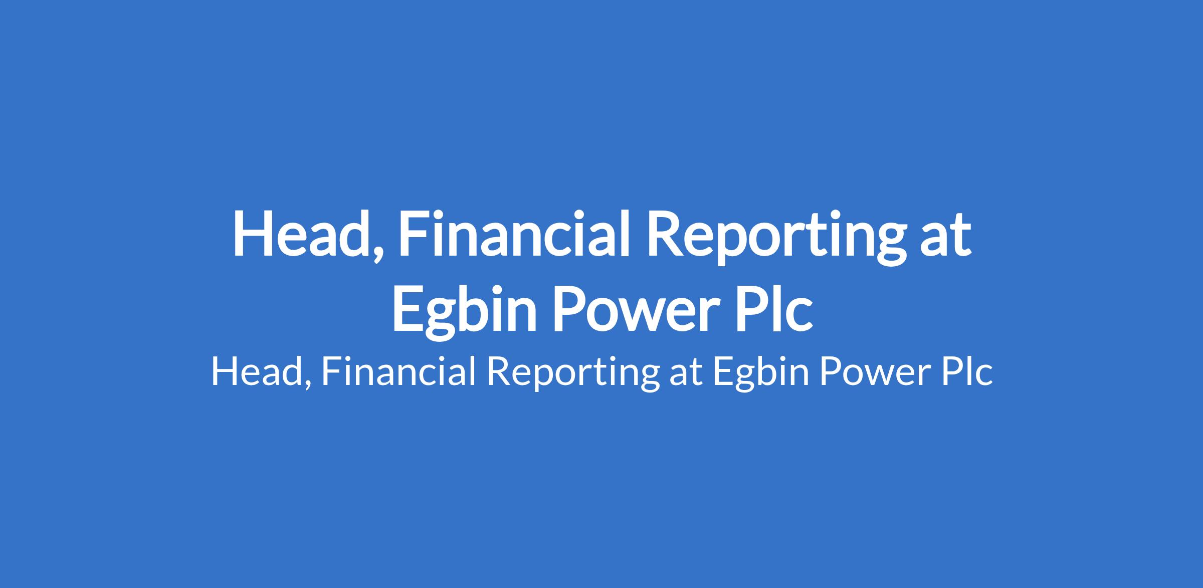 Egbin Power Plc is recruiting to fill the position of: Head, Financial Reporting. The position is located in Ikorodu, Lagos State. Interested candidates should possess a Bachelors Degree or its equivalent in Accounting / Finance / Economics or other related discipline with a minimum of ten (10) years relevant experience, and at least three (3) years in a managerial role.
