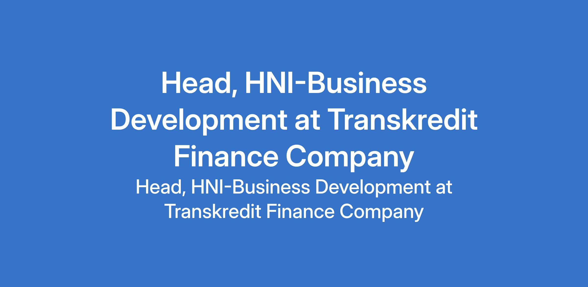 Head, HNI-Business Development at Transkredit Finance Company