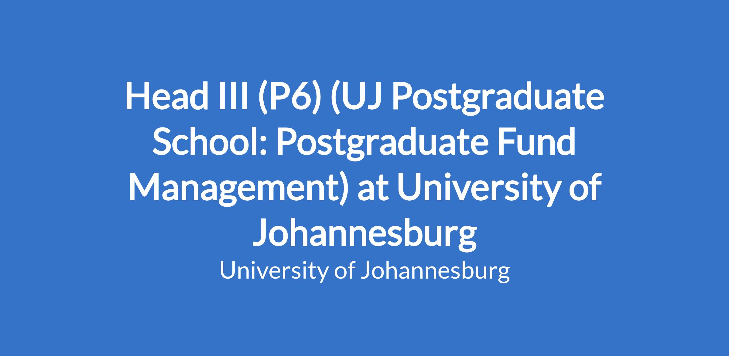 The Postgraduate School (PGS) invites applications for the position of Head of the Postgraduate Fund Management unit within the Postgraduate School. This post requires a detail-oriented mind to manage postgraduate funding through adherence to governance requirements and providing holistic support to postgraduate students and postdoctoral research fellows at the University of Johannesburg.