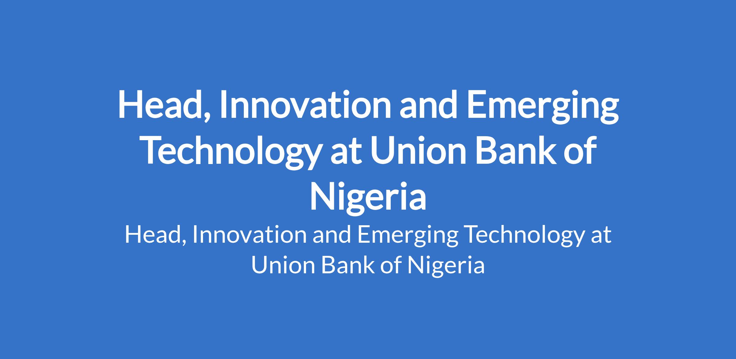 Head, Innovation and Emerging Technology at Union Bank of Nigeria