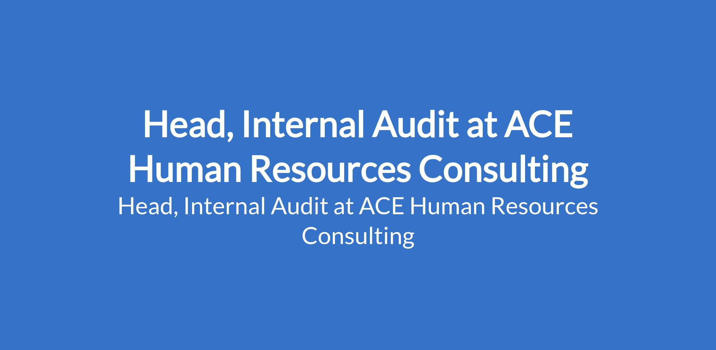 ACE Human Resources Consulting is recruiting to fill the position of: Head, Internal Audit. The position is located in Lagos State. Interested candidates should possess a Bachelors Degree in Accounting with a minimum of 8 years experience in auditing, risk management, compliance and internal control, with at least 3 years in managerial role.