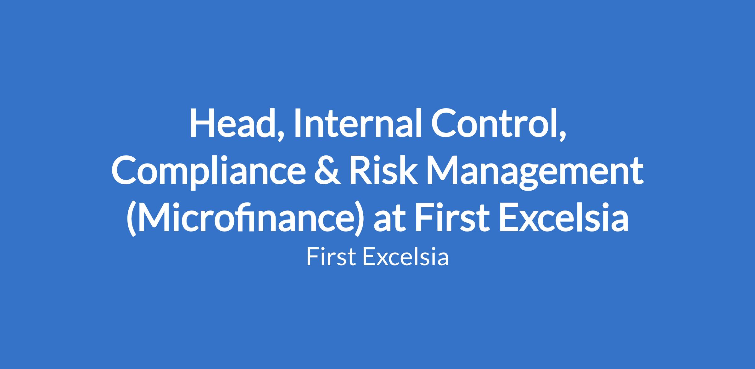 Head, Internal Control, Compliance & Risk Management (Microfinance) at First Excelsia