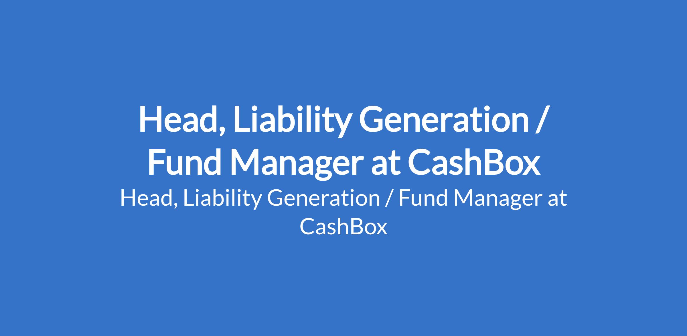 CashBox is recruiting to fill the position of: Head, Liability Generation / Fund Manager. The position is located in Lagos State. Interested candidates should possess a First Degree / HND in any discipline and must have minimum of 3 years work experience with good track record in Liability Generation or related field(i.e. Deposit/Funds/Investment Mobilization) in Non-Bank Financial institutions, Microfinance banks, Asset management companies, Finance houses etc.