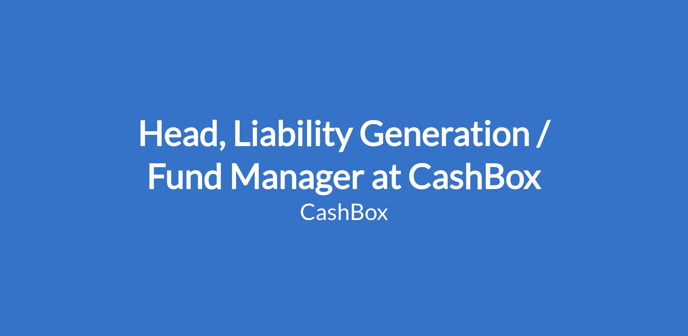 Head, Liability Generation / Fund Manager at CashBox