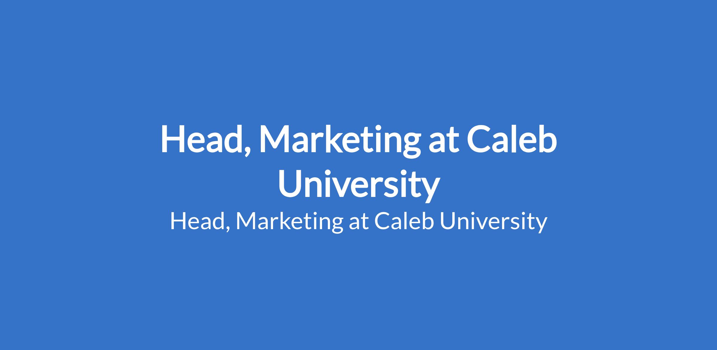 Caleb University invites applications from suitable candidates to fill the position of: Head, Marketing. The position is located in Imota, Ikorodu - Lagos State. Interested candidates should possess a Bachelor's Degree or Master's Degree in Marketing, Public Relations, Mass Communication or related field plus NYSC Discharge Certificate or Evidence of Exemption with a minimum of 3 years post qualification cognate experience.
