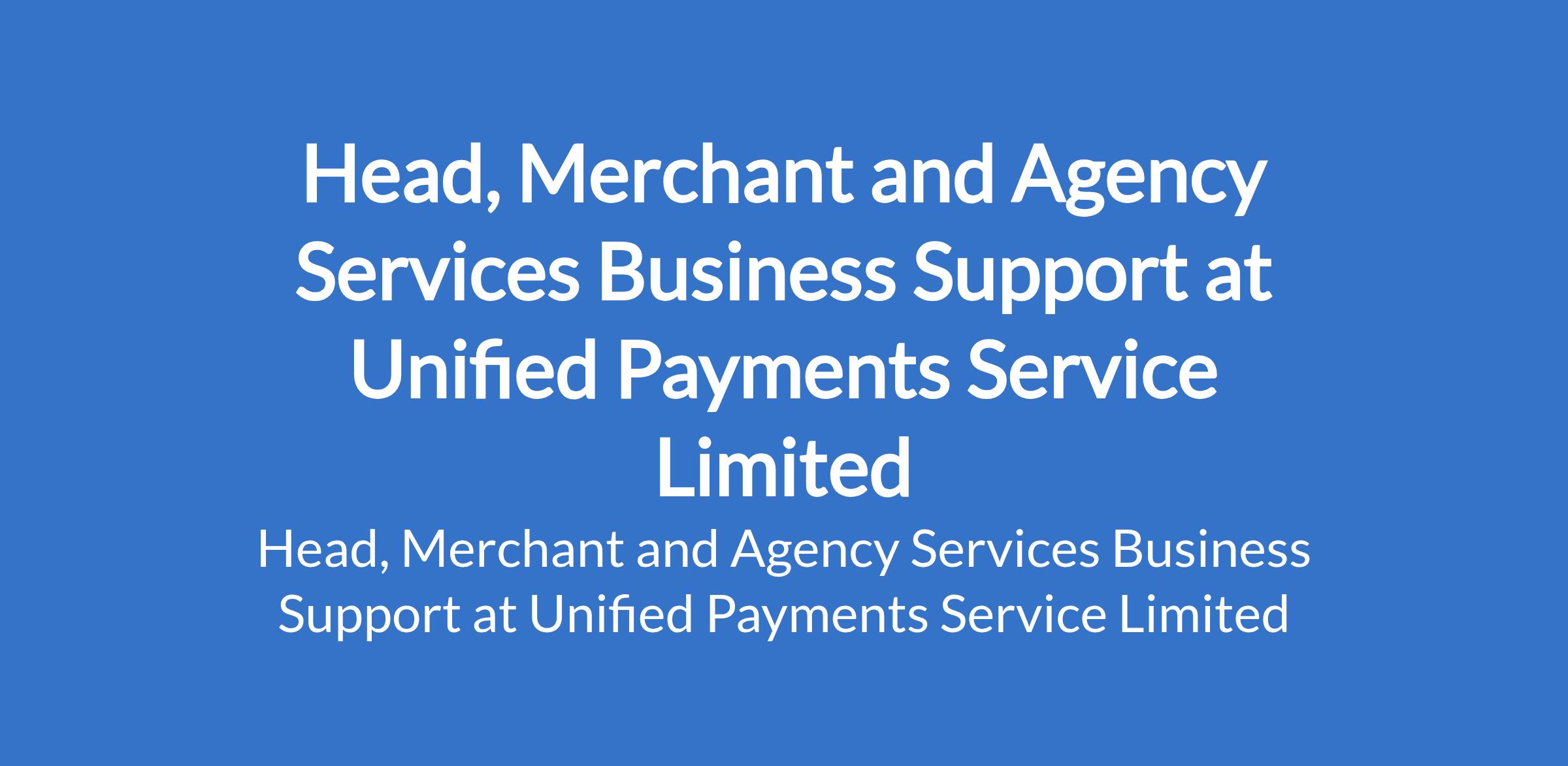 Unified Payments Service Limited is recruiting to fill the position of: Head, Merchant and Agency Services Business Support. The position is located in Lagos State. Interested candidates should possess a First Degree in Finance, Banking, Economics, Business Administration, or related field with a minimum of 10 years post-NYSC experience, with at least 5 years in a leadership role within merchant acquiring, agency banking, digital payments, or fintech operations.
