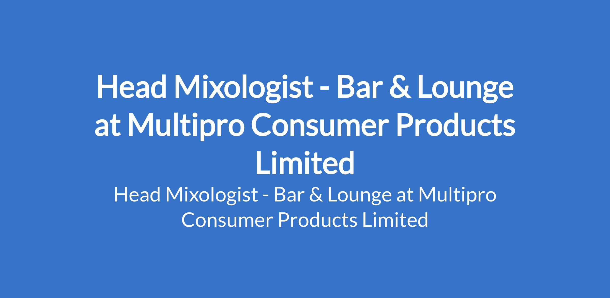 Head Mixologist - Bar & Lounge at Multipro Consumer Products Limited