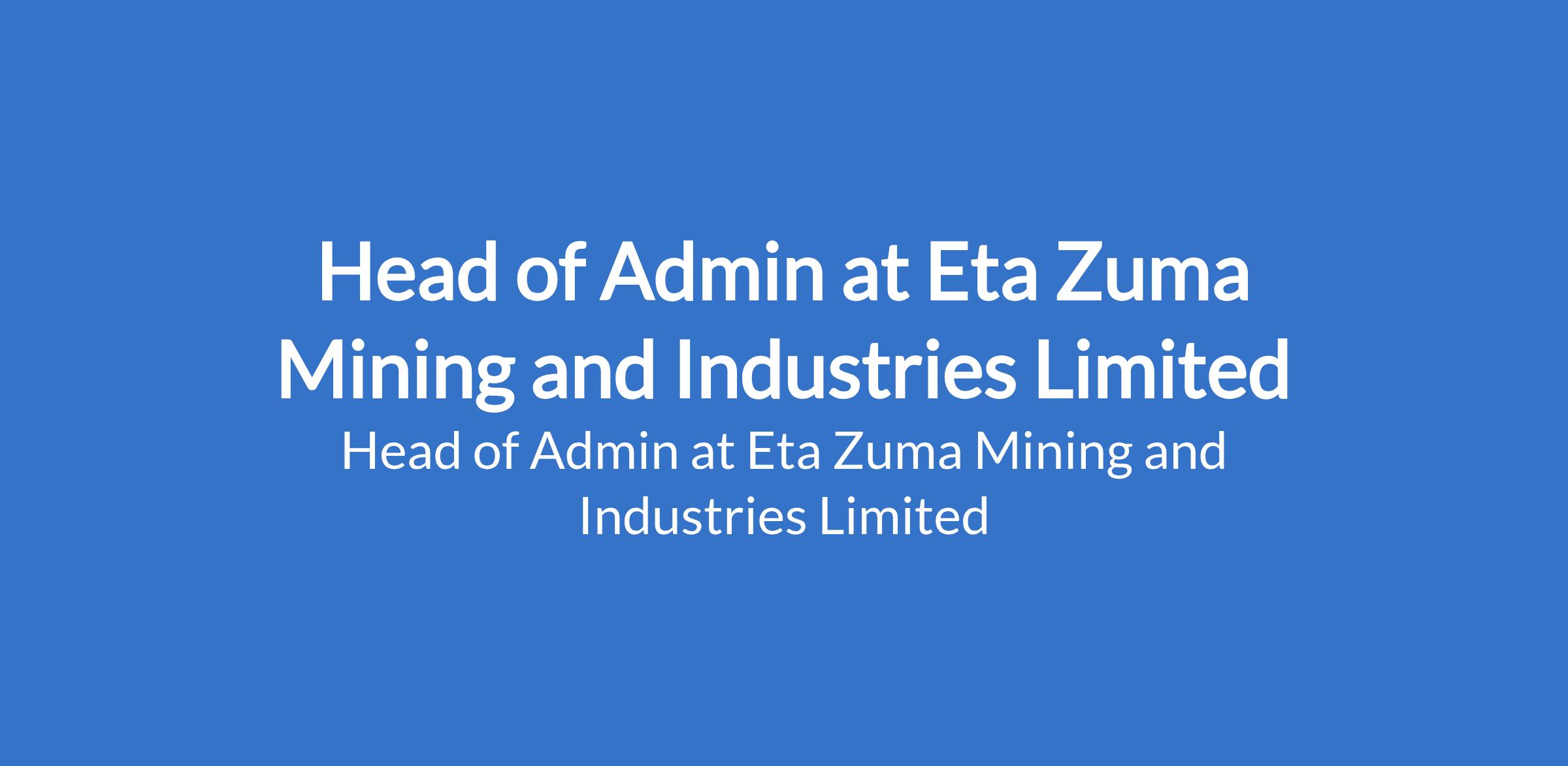 Eta Zuma Mining and Industries Limited is recruiting to fill the position of: Head of Admin. The position is located in Abuja (FCT). Interested candidates should possess a Bachelors Degree or HND in Public Administration, Business Administration, Office Management, or a related field with 8-10 years of progressive experience in administrative roles, with at least 3-5 years in a leadership or managerial capacity overseeing administrative functions.