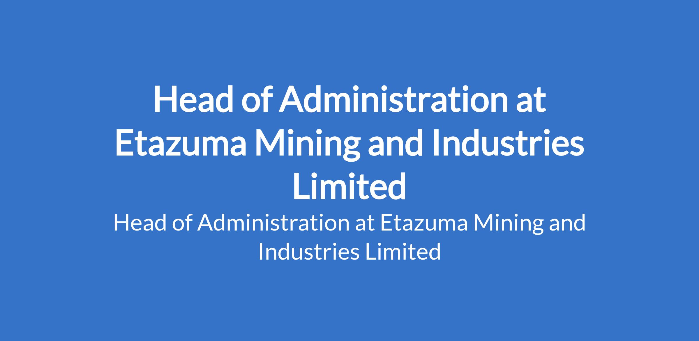 Etazuma Mining and Industries Limited is recruiting to fill the position of: Head of Administration. The position is located in Abuja (FCT). Interested candidates should possess a Bachelor's Degree in Business Administration, Management, or a related field with extensive experience in administrative management, preferably within the mining industries.