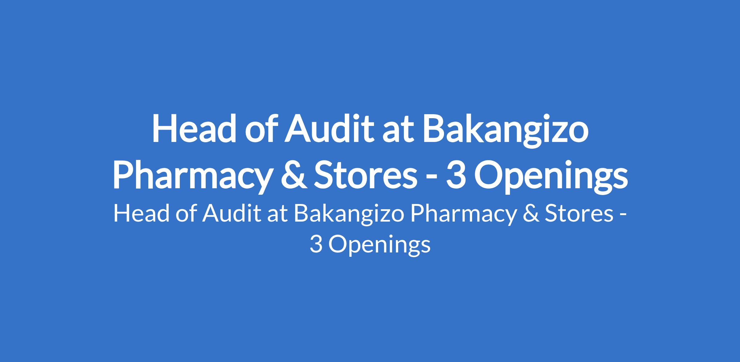 Bakangizo Pharmacy & Stores is recruiting to fill the position of: Head of Audit. The position is located in Gudu, Gwarinpa, and Mabushi - Abuja (FCT). Interested candidates should possess a relevant Professional qualification (ICAN, ACCA, CPA, or equivalent) with Extensive audit experience, including leadership of audit teams in complex organizations.