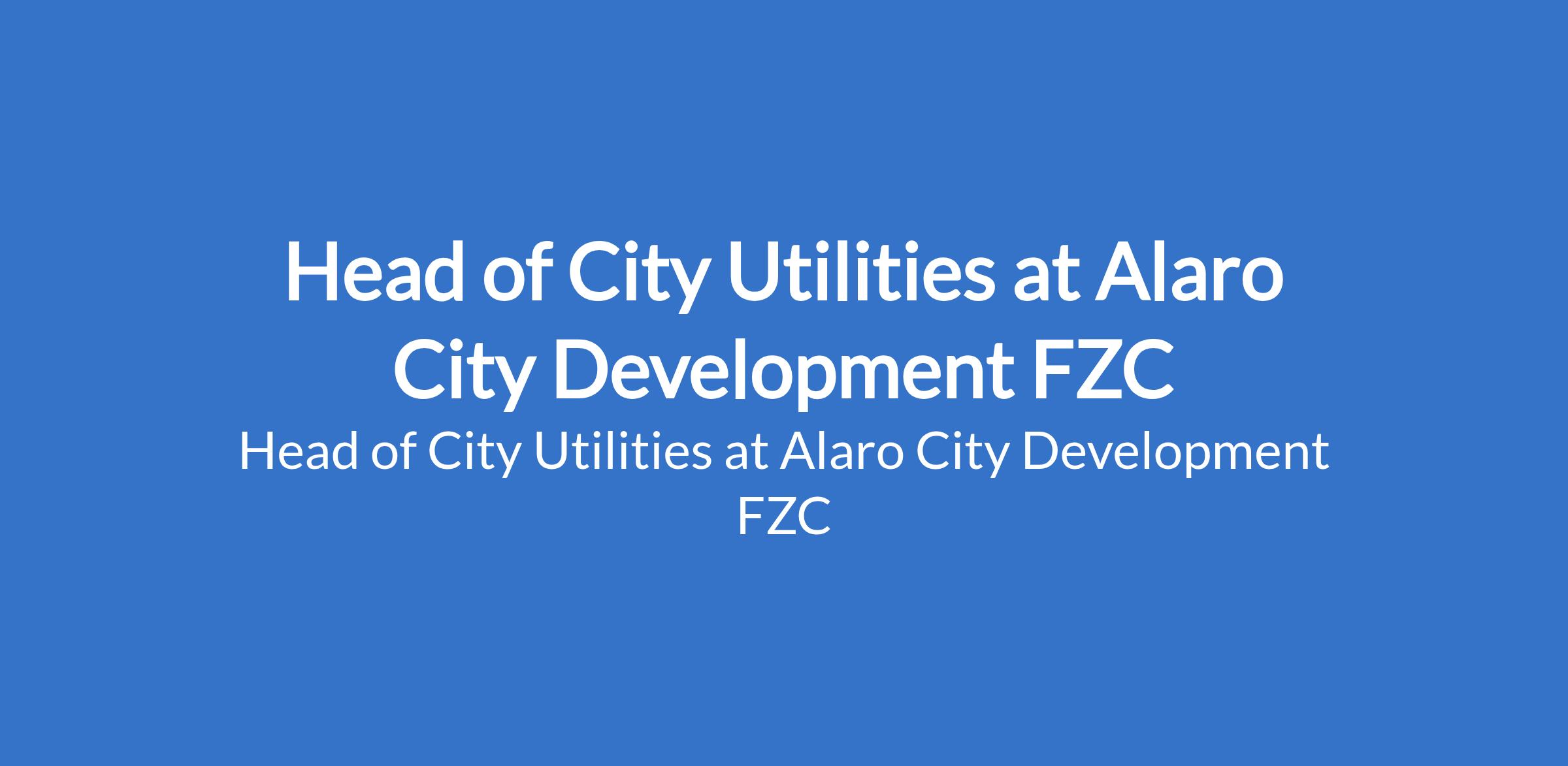 Alaro City Development FZC is recruiting to fill the position of: Head of City Utilities. The position is located in Lekki, Lagos State. Interested candidates should possess relevant qualifications.
