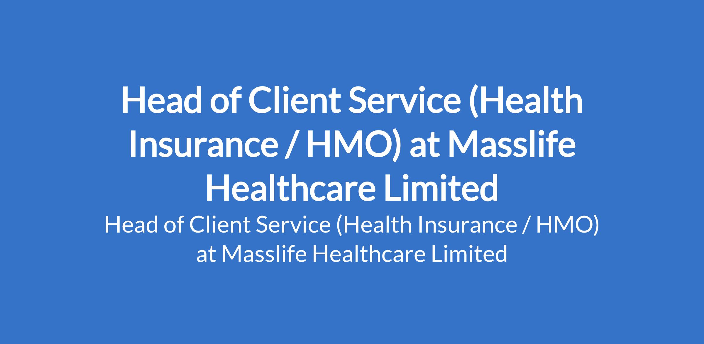 Masslife Healthcare Limited is recruiting to fill the position of: Head of Client Service (Health Insurance / HMO). The position is located in Abuja (FCT). Interested candidates should possess a Bachelors Degree in Business Administration, Healthcare Management, Public Health, or a related field; MBA is a plus with a minimum of 5 10 years of experience in client services, with at least 3 years in a senior leadership role, specifically within a Health Insurance/HMO environment.